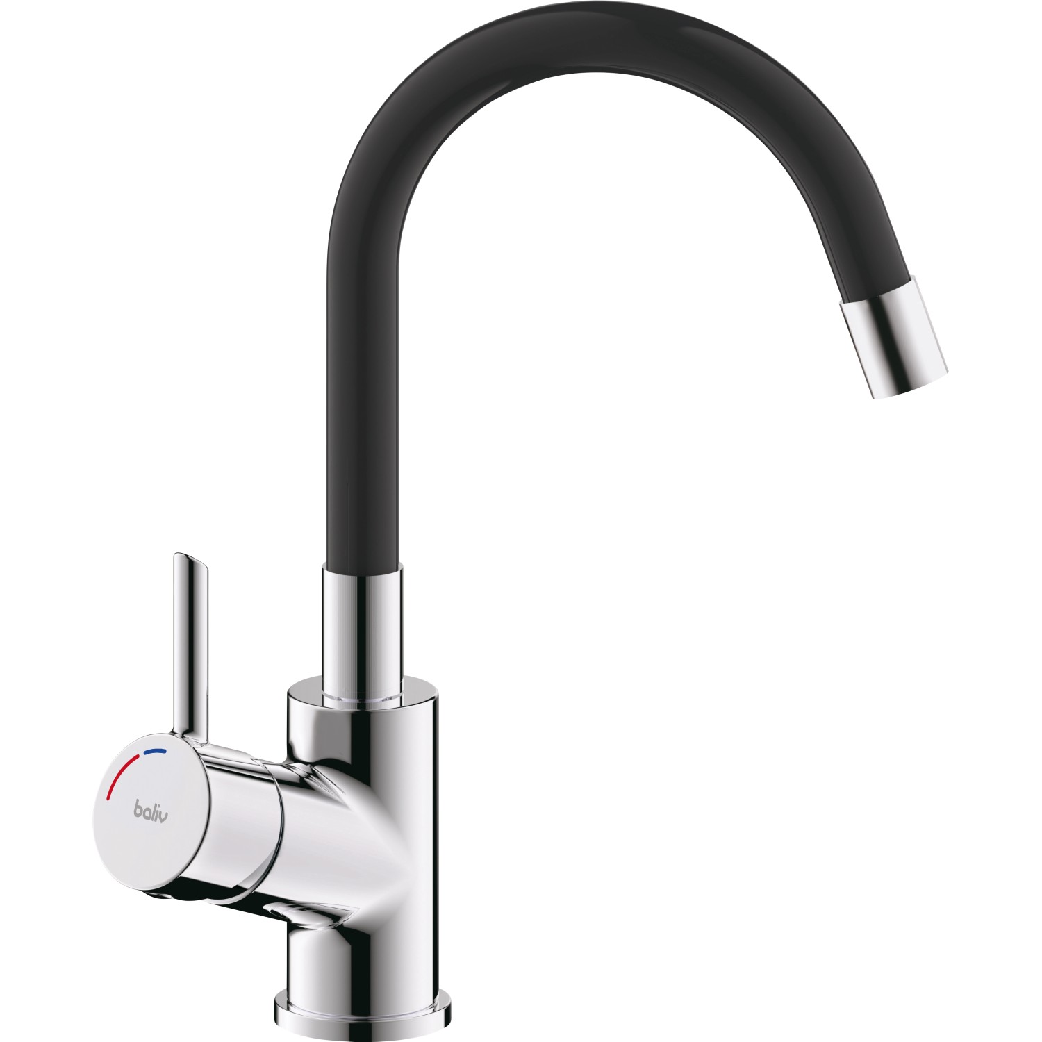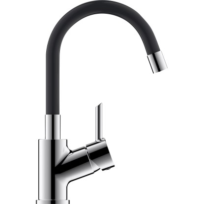 Egykaros, flexibilis szilikon kifolyóval, krómozott fekete.