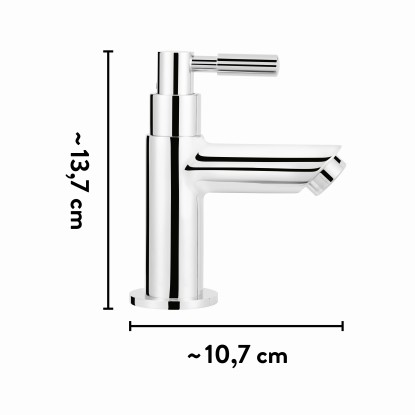 Valami különleges: A baliv KV-4030 hidegvizes szelep formája egy kihúzott távcsőre emlékeztet. A kar és a ferde kifolyócső is harmonikusan illeszkedik ebbe a koncepcióba. Bár ezzel nem nézhet a távolba, ez a fürdőszobai csaptelep biztosan jó helyen lesz a vendégvécében. Egy ilyen hidegvizes csaptelep ugyanis különösen praktikus ott, ahol megspórolható a meleg vízre fordított energia.