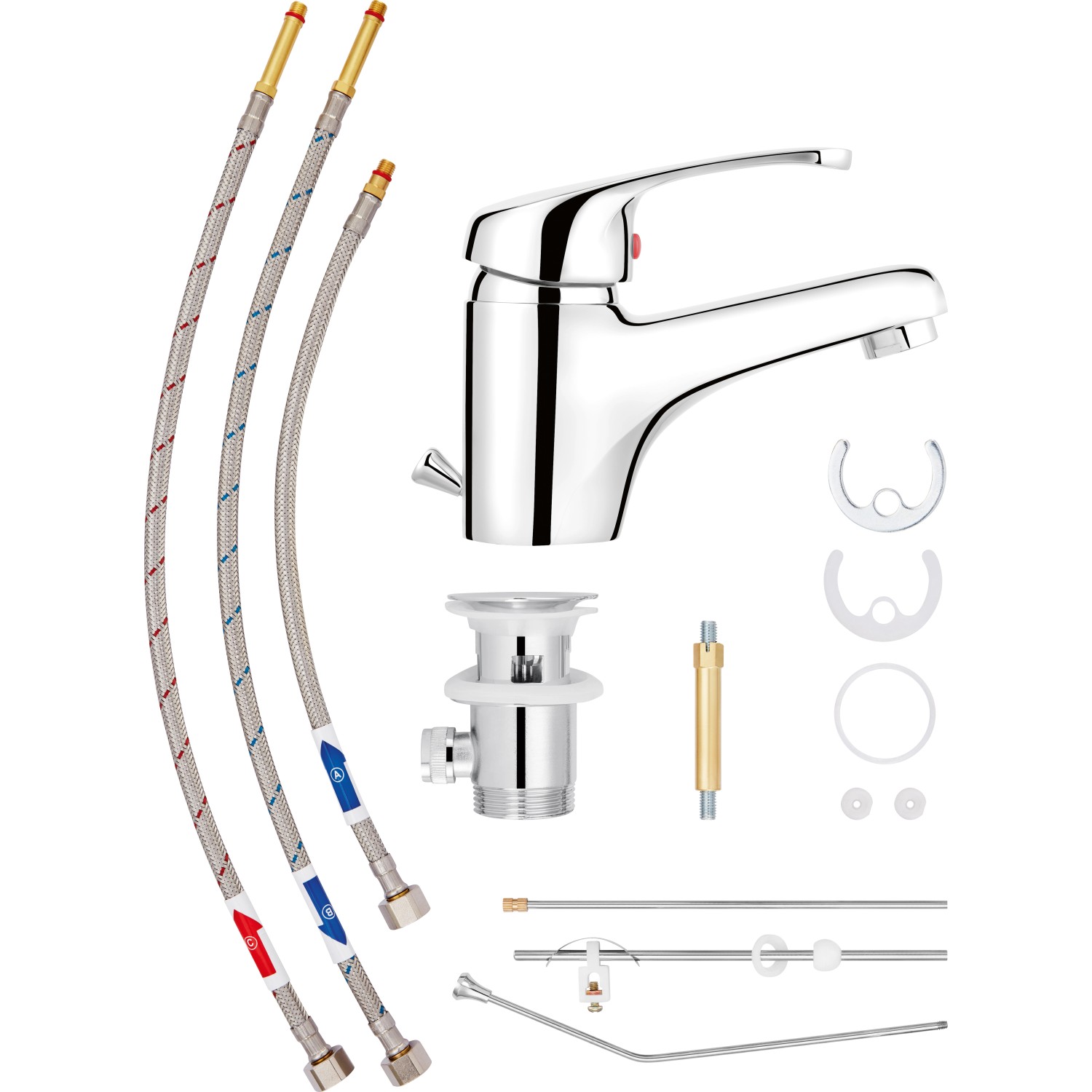 Az OBI DECO-LINE Cassai krómozott, alacsony nyomású mosdó csaptelephez szűrőbetét, Neoperl keverőfúvóka, valamint lefolyógarnitúra tartozik. A csaptelep a hatályos rendelkezéseknek megfelelő csatlakozó tömítőkkel felszerelt. Az egykezes kezelhetőségnek kö
