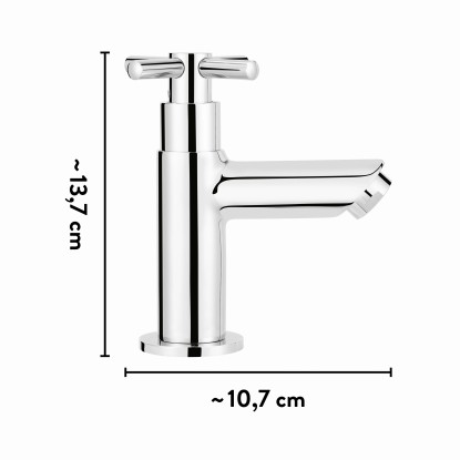 Különlegesség a javából: A baliv KV-5130 hidegvizes csaptelep tekerőgombja különleges kialakítású. A fent elhelyezett kereszt alakú tekerőgomb nemcsak szép, de rendkívül jól használható is, mivel még a nedves vagy szappanos kéz sem csúszik le róla olyan könnyen. Az egyébként egyenes kifolyócső vége ferde kialakítású. Egy ilyen hidesvizes csap mindenhová jó választás, ahol nem szükséges meleg víz, és ezáltal energiát takaríthat meg - például a vendégvécében.