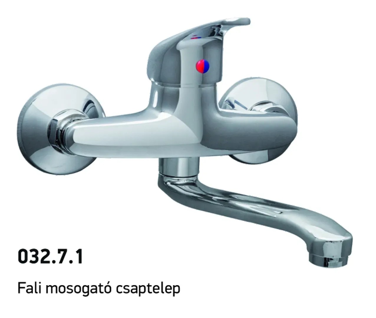 Fali mosogató csaptelep. Műszaki adatok: Maximális üzemi hőmérséklet 70 C. Kerámiabetétes elzáróegység, 40 mm átmérővel. 8 mikronos krómozással. Fém karral 1/2 x 3/4-os z-idommal 150 mm - 160 mm-es kötéstávolságra. Vízáteresztő képesség 13 l / perc fölött