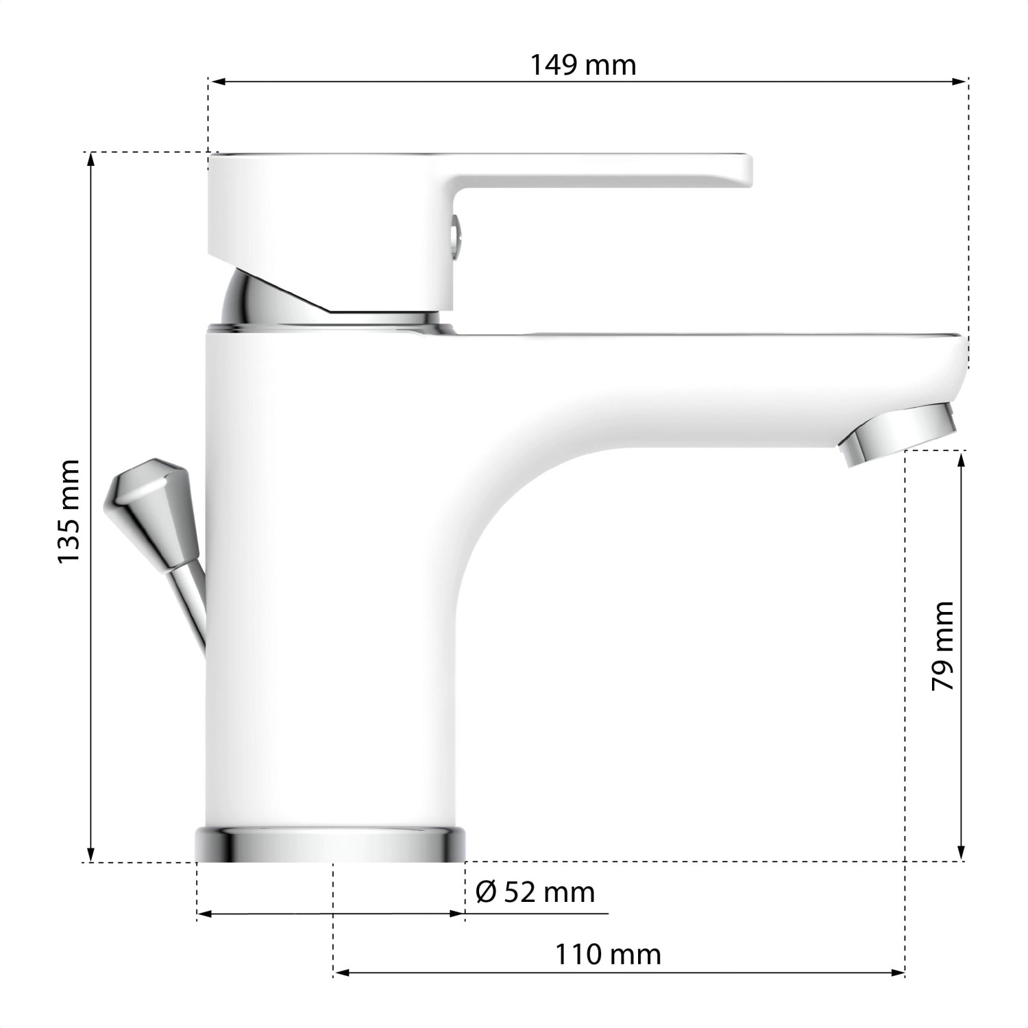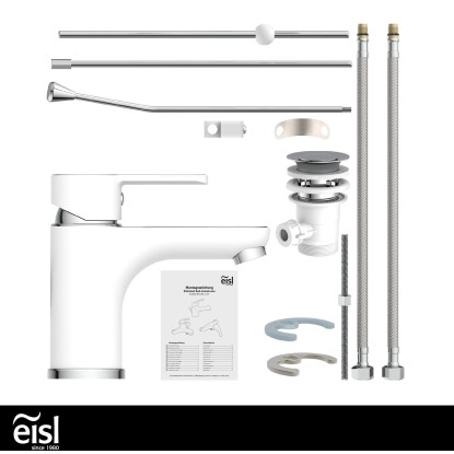 A modern formatervezésű fehér-króm Schütte Diziani fürdőszobai csaptelep a fürdőszoba valódi látványossága. A kényelmes, egy kézzel kezelhető csaptelep több mozgási szabadságot biztosít a mosdókagyló területén. A szállítási terjedelem a lefolyó nyitásához és zárásához szükséges 11/4 colos (átmérő kb. 4 cm) excentergarnitúrát is magába foglalja. A hosszú élettartamú kerámia tömítésekkel rendelkező halk, cserélhető betét gondoskodik az átfolyó vízmennyiség és a vízhőmérséklet pontos szabályozásáról. Hiánytalan összeszerelési készlettel és összeszerelési útmutatóval együtt.