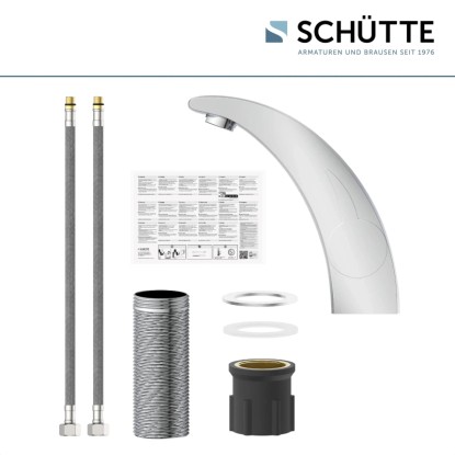 Az exkluzív formatervezésű Schütte Panama fürdőszobai csaptelep igazán szembetűnő eleme fürdőszobájának. Az egy kézzel kezelhető csaptelep több mozgási szabadságot biztosít a mosdókagyló területén. Hosszú élettartamú kerámia tömítésekkel rendelkező halk, cserélhető betét az átfolyó vízmennyiség és a vízhőmérséklet pontos szabályozásához. Megfelel a német Ivóvízrendelet rendelkezéseinek, a vízzel érintkező komponensek bevizsgálása pedig a KTW és W270 irányelvek szerint történt. A Panama nagynyomású csaptelep egy hideg- és egy melegvíz-csatlakozással rendelkezik (két rugalmas cső a szállítási terjedelemben). A hiánytalan összeszerelési készlet és a könnyen értelmezhető összeszerelési útmutató segítségével az összeszerelés gyerekjáték lesz.