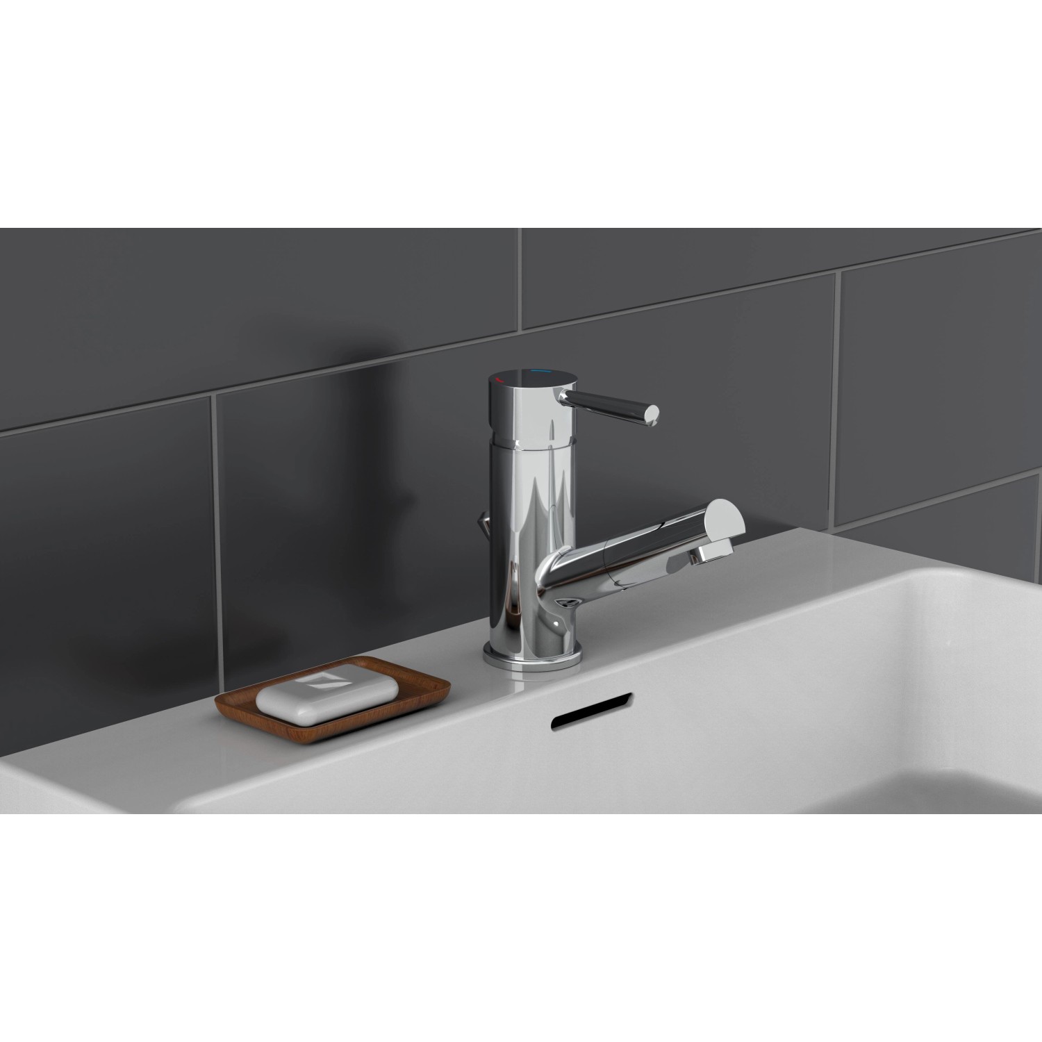 - Elegáns mosdó csaptelep kihúzható kézi zuhanyfejjel - ideális a gyors hajmosáshoz