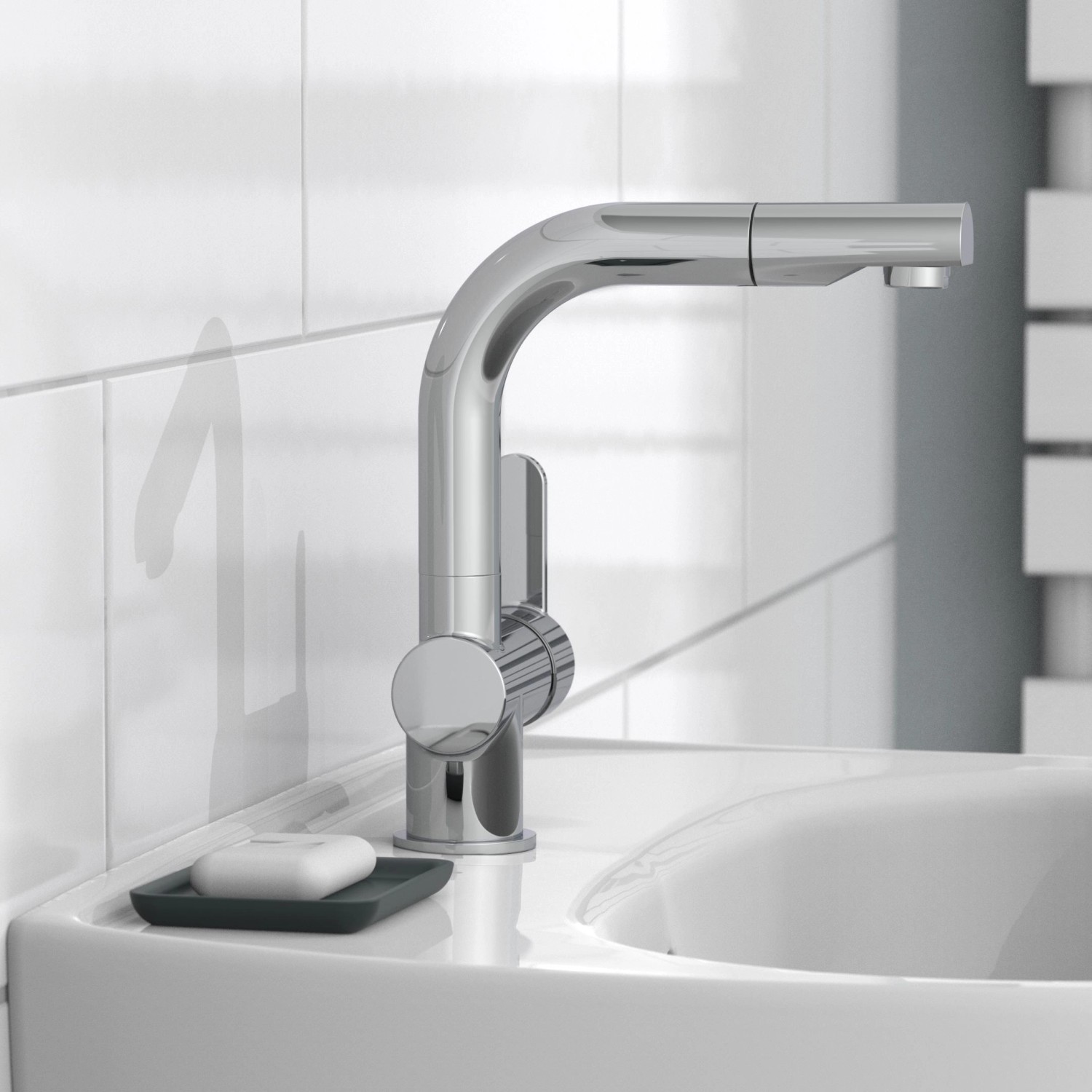 - Designer mosdó csaptelep magas kifolyócsővel - látványosság a fürdőszobába