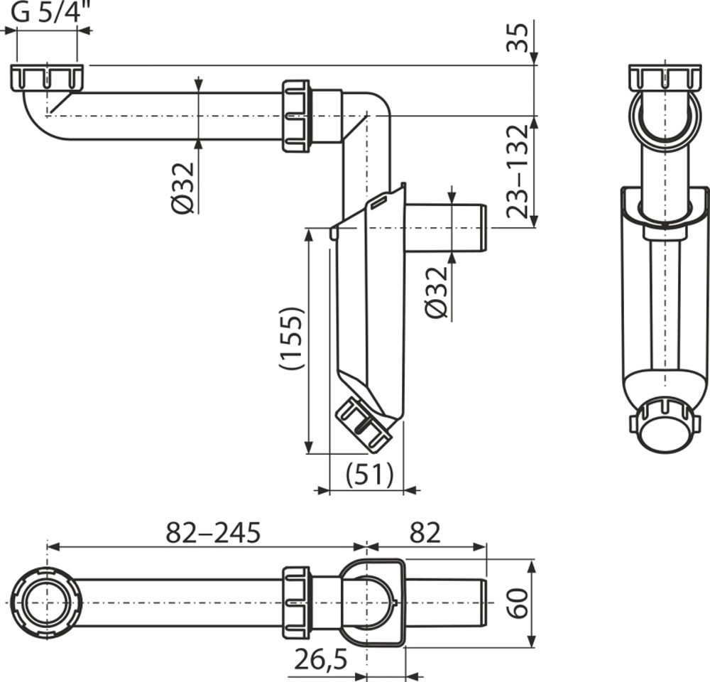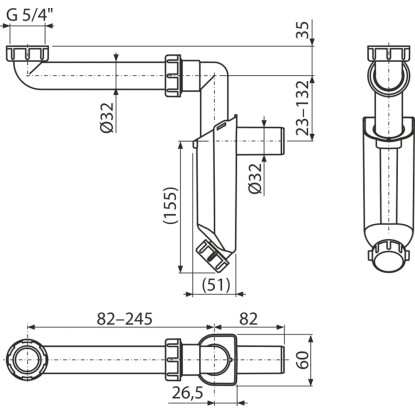 Alca Helytakarékos mosdószifon DN32 5/4" hollanderrel A43S-DN32