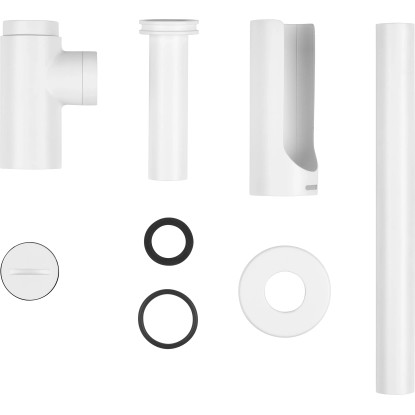 A fali csatlakozóhoz való hátsó lefolyócső átmérője 31,5 mm. Tetszés szerint körülbelül 35 cm hosszúságig állítható be. A legjobb az egészben: Nincs szükség speciális szerszámra, mert a csavaros kupakokat a mellékelt tömítésekkel szerszám nélkül lehet felszerelni.