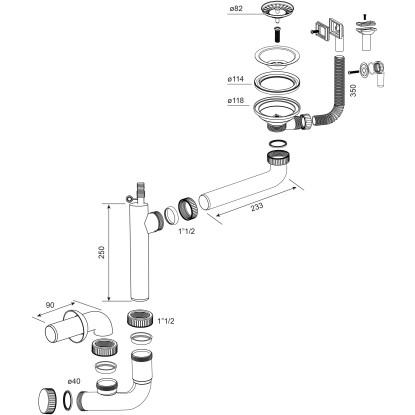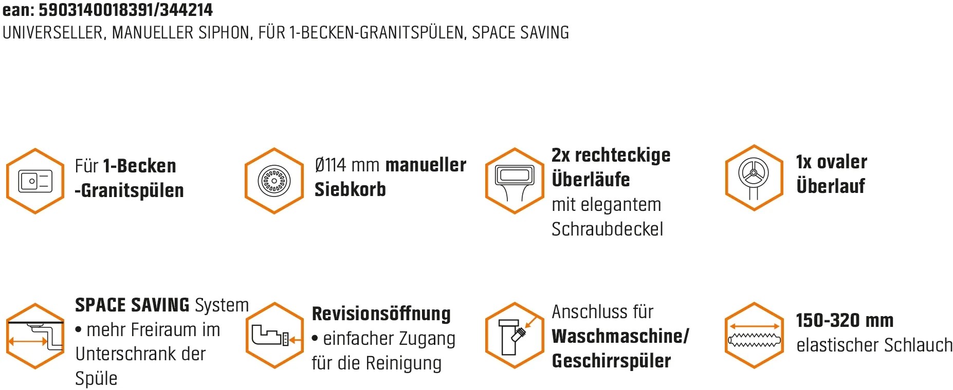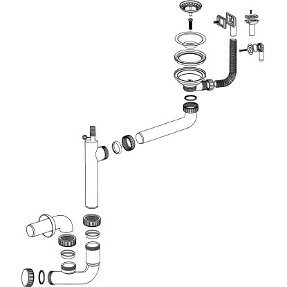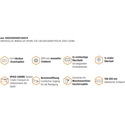 Az univerzális Miló szifonkészlettel a mosogató megbízhatóan köthető rá a szennyvízrendszerre. Egymedencés mosogatókhoz alkalmas, és bűz-, valamint gázzáró elzárásról gondoskodik. Ezt a szifon az átgondolt csővezetés révén éri el. Egy olyan, helytakarékos rendszerről van szó, amely kicsi mosogató alatti szekrényekben is használható. A le- és a túlfolyó kiváló minőségű rozsdamentes acélból készült. Ezt az anyagot hosszú élettartam és rozsdamentes tulajdonságok jellemzik. A csövek műanyagból készültek. A csatornacső átmérője 114 mm. Mosogatógép csatlakoztatásához megfelelő tömlőcsatlakozóval rendelkezik. A csomag tartalmazza a le- és túlfolyókészlettel ellátott teljes szifont, valamint egy kézzel zárható szűrőkosarat is.