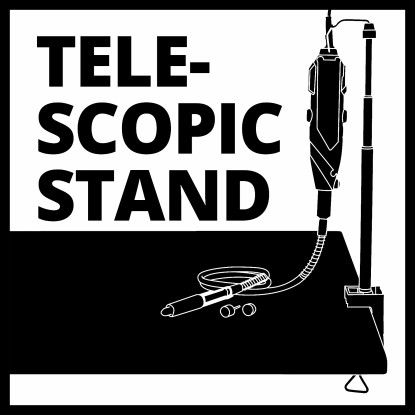 Ezen túlmenően a szerszám a teleszkópos állvány és a hozzá tartozó akasztó használatával praktikusan rögzíthető. Ergonomikus kialakítása és Softgrip markolata egyszerű kezelést és maximális kényelmet biztosít a munkavégzés során.