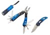 A LUX-TOOLS 3 darabos multifunkcionális szerszámkészlet tartalma: egy 9 LED-es alumínium zseblámpa 3 db AAA elemmel, egy 12 részes multifunkcionális szerszám poliamid táskával és egy összecsukható univerzális kés. A multifunkcionális szerszám a következő szerszámokat tartalmazza: