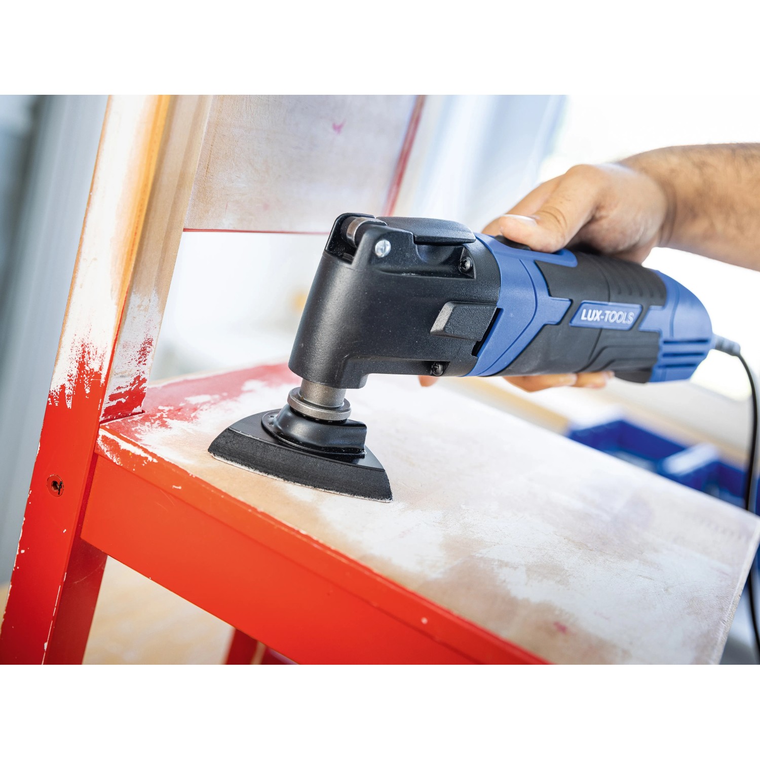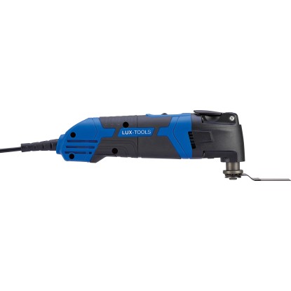 A Lux Quickclamp300 W multifunkciós szerszám beépített fordulatszám-szabályozásával a munkasebesség precízen szabályozható, így optimális eredményt biztosít. Ezenkívül a készülék egy praktikus mélységütközővel rendelkezik, amely biztonságos és precíz munkavégzést biztosít.