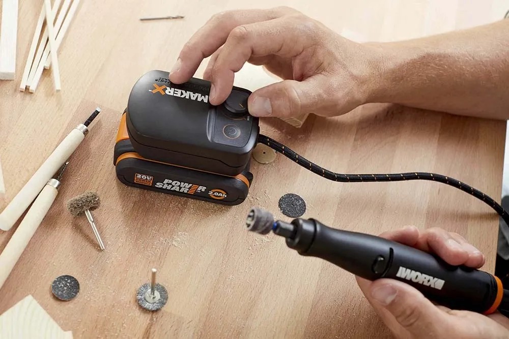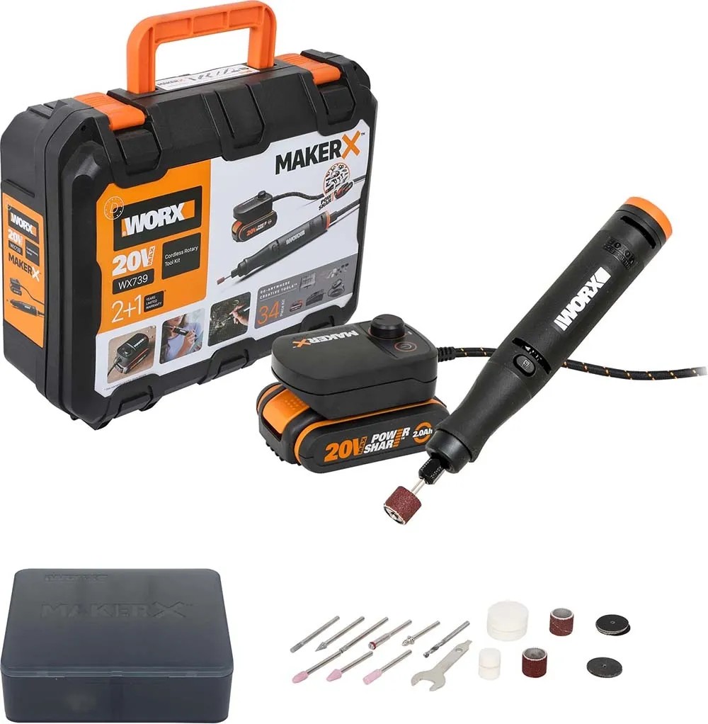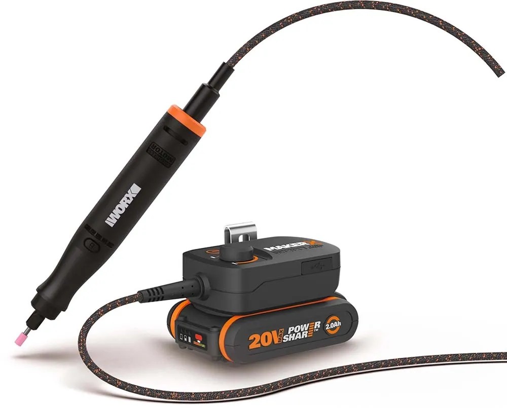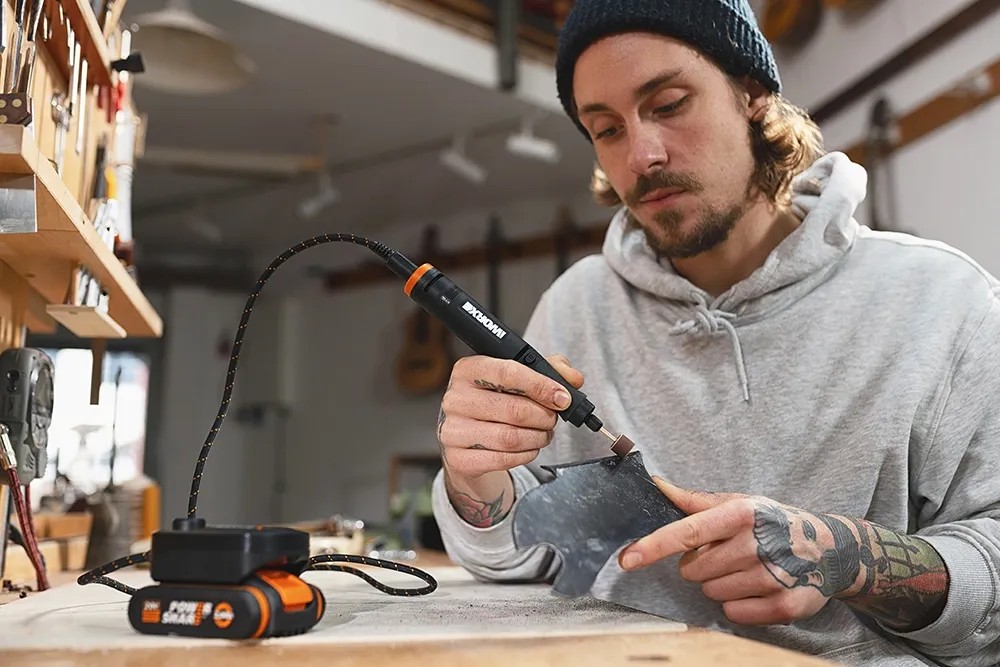 A Worx MakerX multifunkciós szerszám lehetővé teszi a közvetlen áramforrás nélküli kreatív munkavégzést. Ennek során az univerzális befogónak köszönhetően bármilyen forgó szerszámot használhat, így a multifunkciós eszköz alkalmas csiszoláshoz, fúráshoz, polírozáshoz vagy gravírozáshoz is. A forgó szerszám ezáltal sok területen használható, például barkácsolás, divattervezés, művészkedés, javítás, restaurálás és famegmunkálás során is.