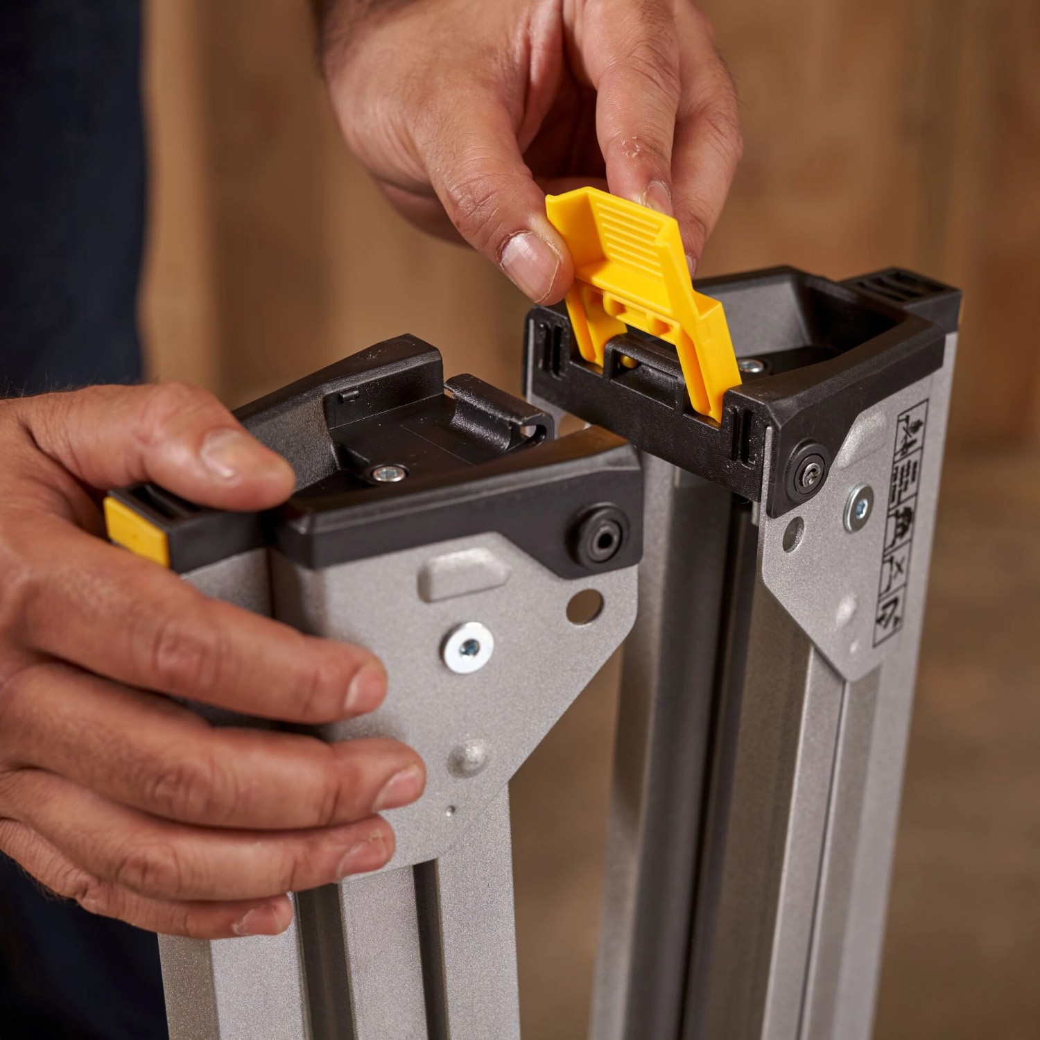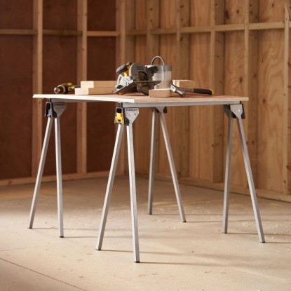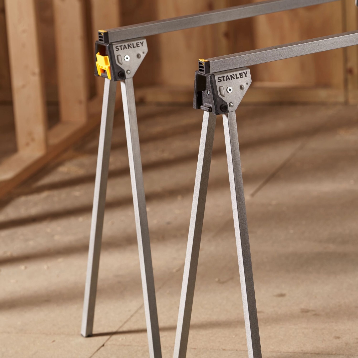 455 kg-os teherbírás (1 pár bak esetén). Fém szerkezet, behajtható fém lábak. Összekapcsolható elemek.