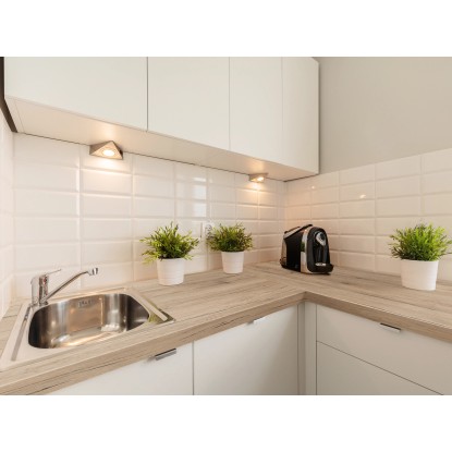 Az új, ultramodern CPL munkalap vékony kialakítással, modern élprofillal és divatos dekorral rendelkezik. A munkalap 90 %-ban fát tartalmazó, strapabíró műanyag laminátból készült. Tapintható felületi szerkezettel és egyenletesen lekerekített élekkel rendelkezik. A munkalap ráadásul 180 °C-ig hőálló, nedvességálló (az alsó része tömítőfestékkel kezelt) és könnyen tisztítható.