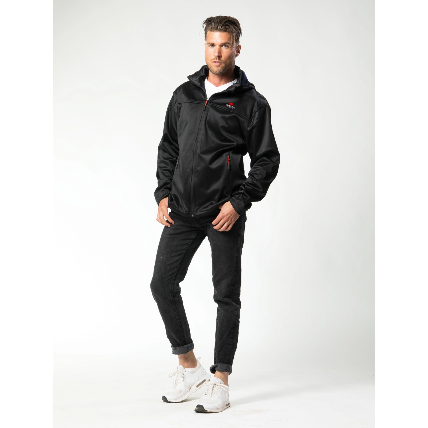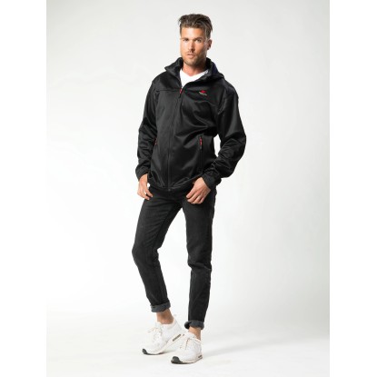 A fekete színű, XXL-es méretű férfi softshell dzseki kényelmes szabással rendelkezik. Levehető kapucnijával, cipzárjával és 2 cipzáros zsebével nem csak rendkívül praktikusan felszerelt, hanem a kontrasztos színeknek köszönhetően nagyon divatos is. Az alsó szegélyben rugalmas összehúzó zsinór található. Belseje bolyhosított, és ugyanakkor kontrasztos kialakítású is. A víztaszító anyag 3000 mm-es vízoszlop nyomásának áll ellen. Ezenkívül hőszigetelő hatású, légáteresztő, szélálló, gyorsan száradó és különösen könnyen kezelhető. A dzseki ennek köszönhetően kiválóan alkalmas kültéri tevékenységekhez.