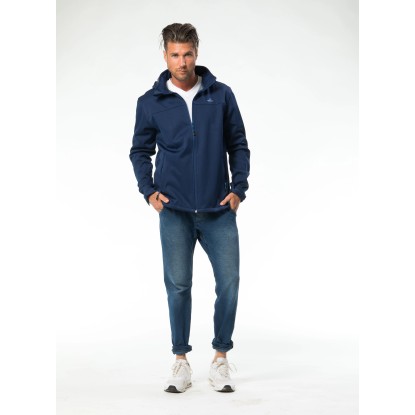 A tengerészkék színű, L-es méretű férfi softshell dzseki kényelmes szabással rendelkezik. Levehető kapucnijával, cipzárjával és 2 cipzáros zsebével nem csak rendkívül praktikusan felszerelt, hanem a kontrasztos színeknek köszönhetően nagyon divatos is. Az alsó szegélyben rugalmas összehúzó zsinór található. Belseje bolyhosított, és ugyanakkor kontrasztos kialakítású is. A víztaszító anyag 3000 mm-es vízoszlop nyomásának áll ellen. Ezenkívül hőszigetelő hatású, légáteresztő, szélálló, gyorsan száradó és különösen könnyen kezelhető. A dzseki ennek köszönhetően kiválóan alkalmas kültéri tevékenységekhez.