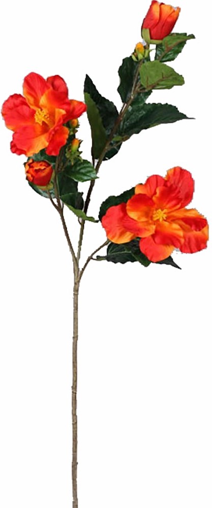 A gyönyörű, narancssárga árnyalatú hibiszkusz ág a helyiségek igényes, hangulatos dekorációjaként ideális. A pompás műág gyönyörű megjelenésével és könnyen ápolható tulajdonságaival tűnik ki. Önmagában vagy akár más virágokkal és ágakkal kombinálva stílusosan díszíti a helyiségeket, és nyári hangulatot teremt.