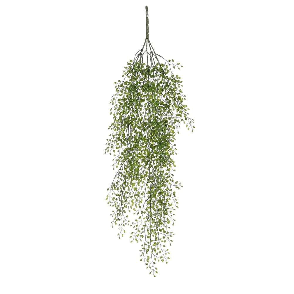 Nincsenek növények a lakásban? A Mica Decorations műnövényei nem különböztethetők meg a valódiaktól, viszont nem igényelnek ápolást. Ez azt jelenti, hogy ennek a jázmin felakasztható műnövénynek a kis, zöld levelei mindig gyönyörűek maradnak. Különböző méretekben és zöld árnyalatokban jelennek meg az extra természetes hatás érdekében. Pont, mint az igazi! Ezenkívül a hosszú, lógó ágak játékos megjelenést kölcsönöznek neki. Helyezze be a műnövényt az erős alap segítségével egy virágcserépbe, és egyszerűen gyönyörködjön benne! Remekül mutat a szekrényen vagy a plafonon. Kombinálja a jázmint a kollekció más műnövényeivel és virágaival, és legyen otthona még zöldebb. A felakasztható növény hossza 81 cm.