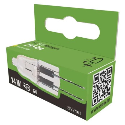 EMOS ECO halogén izzó, JC 12V, G4, 14W, 235 lm. 2000 óra élettartam, 65 W helyettesítő.