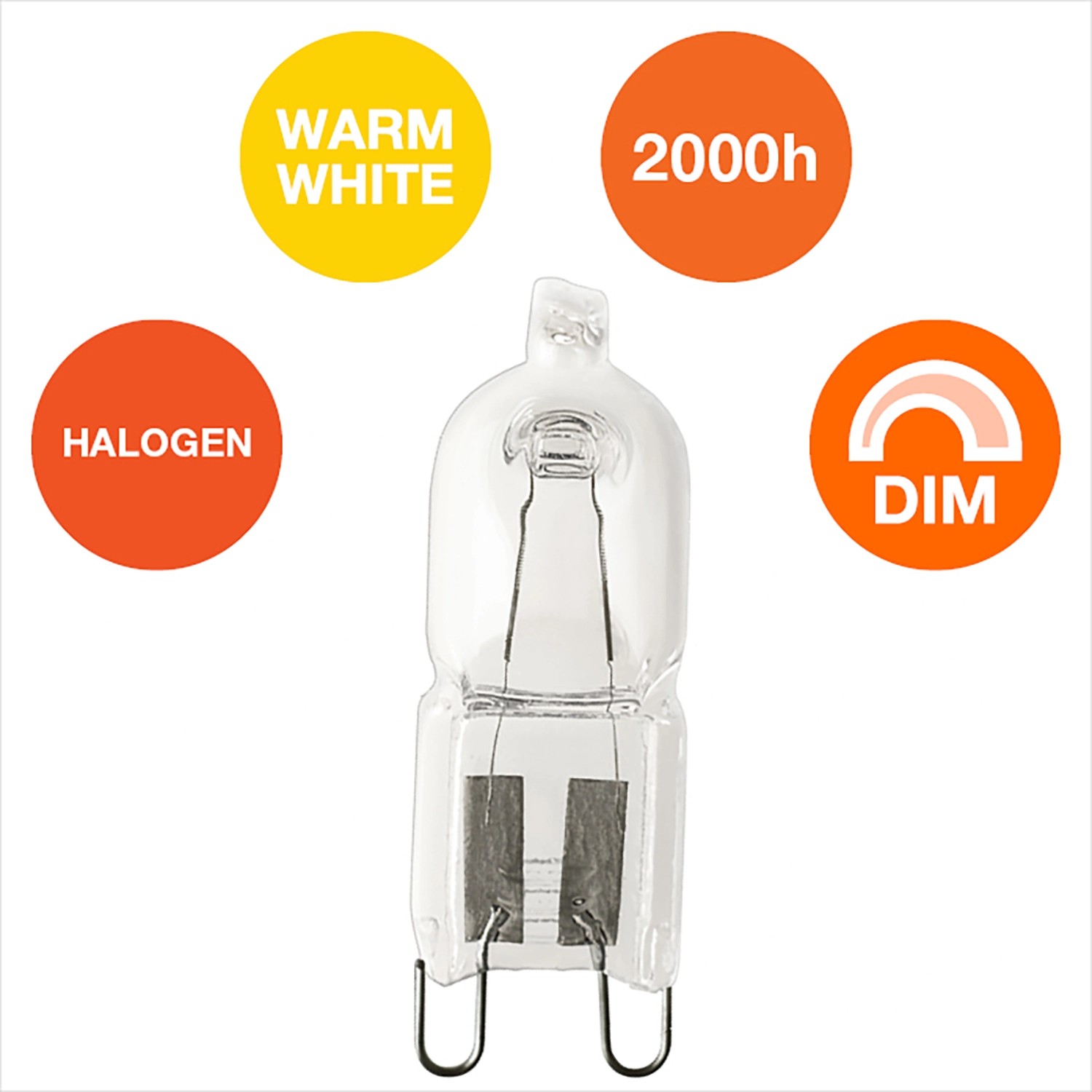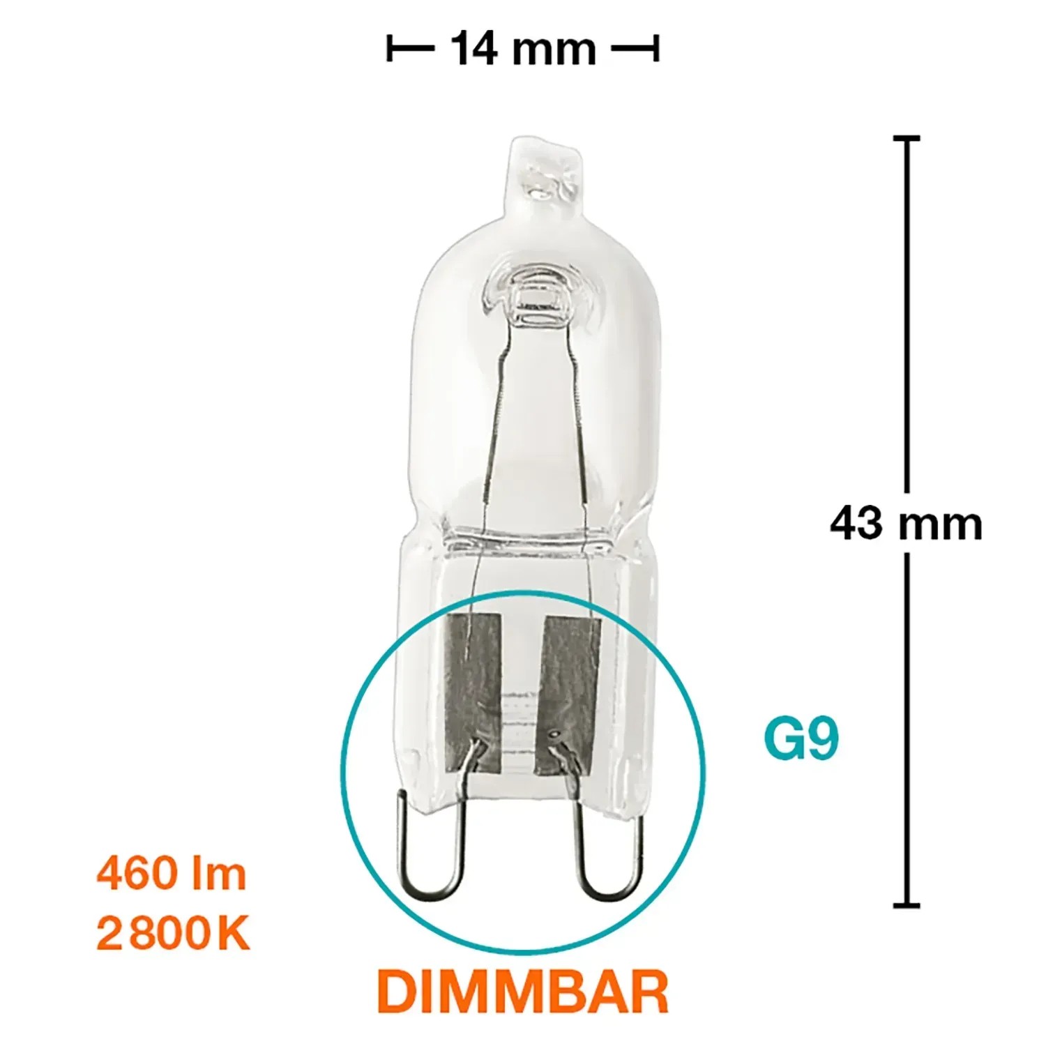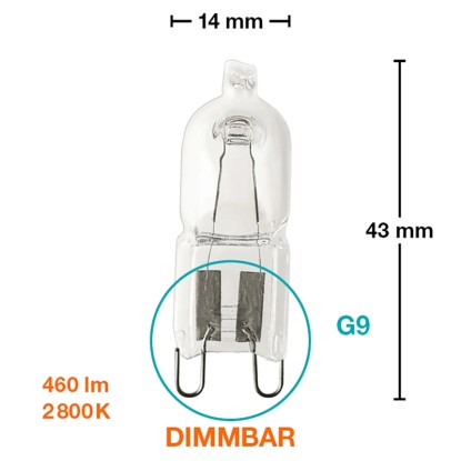 2800 K színhőmérsékletével az Osram G9 nagyfeszültségű halogénlámpa tökéletesen alkalmas a konyha és a bejárat megvilágítására. Az izzó az átlátszó színnek köszönhetően univerzálisan használható.