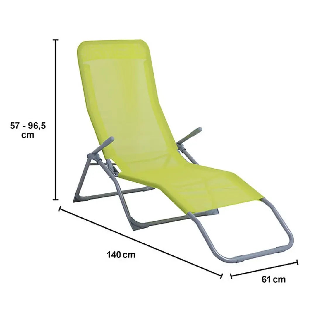 Az összecsukható nyugágy a kertben, teraszon vagy az erkélyen történő használat során egyaránt a kényelmes pihenés lehetőségét nyújtja. A fekvő pozíciónak köszönhetően a nyugágy kivételesen kényelmes. A kellemes anyag garantálja, a szabadban eltöltött napsütéses napok még élvezetesebbé váljanak. Műanyag kartámaszok szolgálják a kezek megtámasztását.