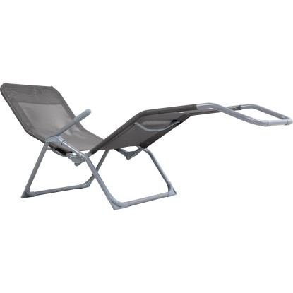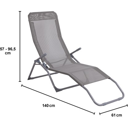 A kerti napozóágy nagy ülő- és fekvőfelületet biztosít, méretei pedig 57 cm - 96 cm x 61 cm x 140 cm. A beépített csuklóelem segítségével választhatsz az ülő- és a fekvő helyzet között. A fekvőfelület ívei kellemes fekvési élményt biztosítanak zavaró élek nélkül.Robusztus, összecsukható napozóágy