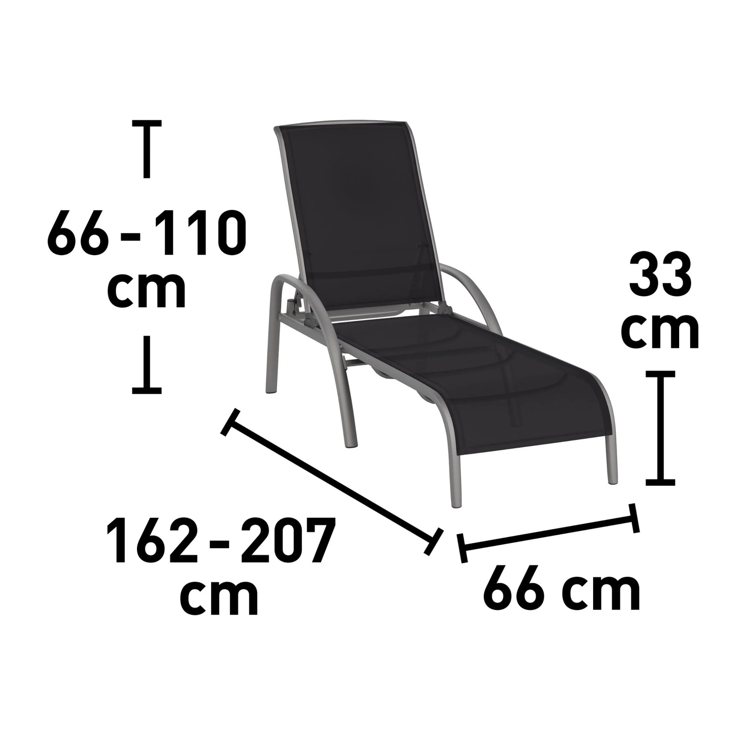 Az időtlen fekete színű, strapabíró textilénhuzat kényelmesen idomul a testhez. Az erős szövetkeverékből (76% polivinil-klorid, 24% poliészter) álló nyugágy különösen könnyen tisztítható és időjárásálló. 207 cm hosszú és 66 cm széles, tágas fekvőfelületével bőséges helyet kínál a pihenéshez. A 33 cm-es ülésmagasságú Welsby napozóágy maximális teherbírása 110 kg. Ha pedig mégis másra kell a hely, a napozóágy praktikusan összecsukható és helytakarékosan tárolható - ami ideális megoldás változatos szabadtéri időtöltésekhez.