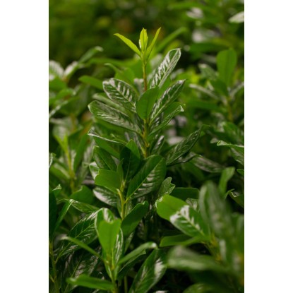 Az OBI Living Garden "Novita" balkáni babérmeggy (Prunus laurocerasus) májusban fehéren virágzik, nagyon sűrűn növő, örökzöld és ezért sövényekhez ideális. Jól tűri az alapos visszavágást, rendkívül fagyálló, árnyéktűrő és robusztus.