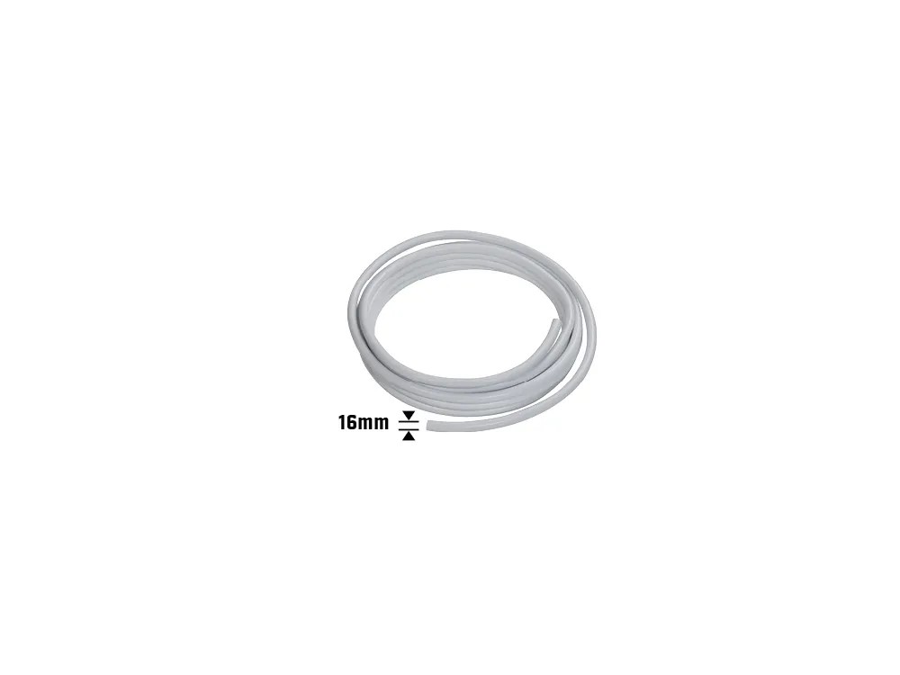 A cső átmérője 16 mm, falvastagsága 2 mm. 10 m-es hosszúságának köszönhetően a feltekert cső nagyobb távolságokra is használható és rugalmasan fektethető.