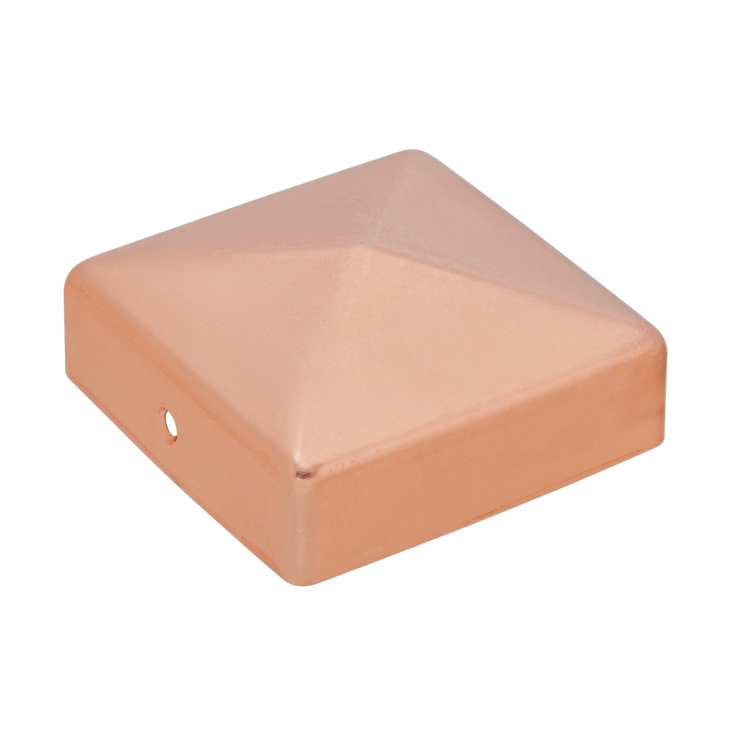 A négyszögletes oszlopsapka bármely 70 mm x 70 mm-es faoszlop lezárására alkalmas. A oszlopsapka caponlakkal bevont rézből készült, és korrózióálló lakkozással rendelkezik. Kültéri használatra ideális.