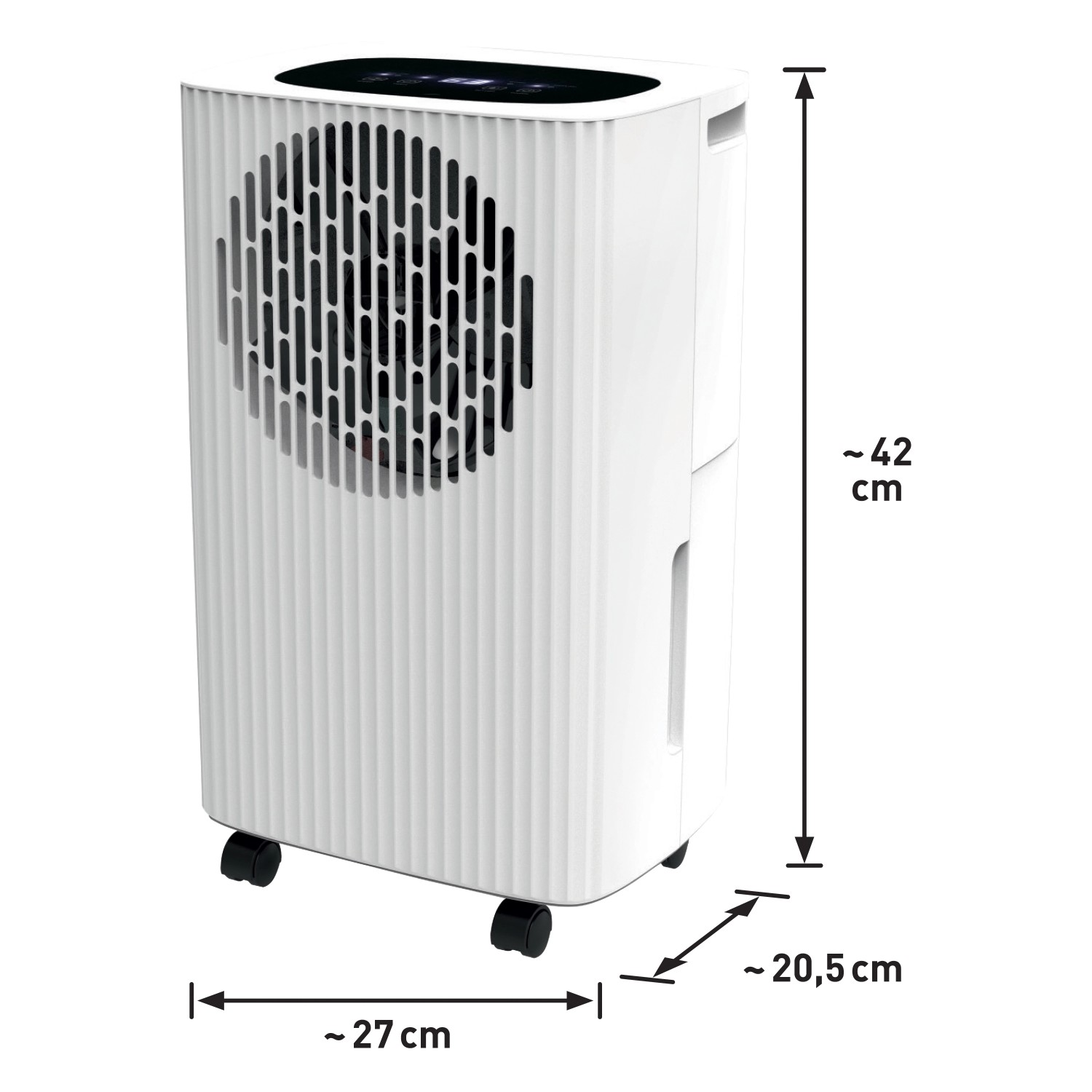 A párátlanító kezelése rendkívül egyszerű és intuitív. Minden beállítást a beépített LED-es kijelző és az érintőgombok segítségével végezhet el. Az állítható higrosztáttal kiválaszthatja a kívánt pármentesítési fokozatot a helyiség adottságainak megfelelően, így mindig ideális beltéri klímát érhet el. A 24 órás időzítő további kényelmet biztosít: Állítsa be a készüléket, hogy automatikusan kapcsoljon be és ki az Ön napi beosztásához igazodóan. A nagy, 2,4 literes víztartályát csak ritkán kell üríteni. A szükséges rugalmasságot két teljesítményfokozat (200 W és 205 W) szavatolja. Az R290 hűtőközeget használó, 1,4 méteres kábellel szerelt páramentesítő tökéletes választás egy kellemes otthonhoz.