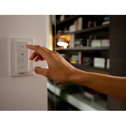 Vezérelje lámpáit Hue fényerő-szabályozó kapcsolóval, és állítsa be azok fényerejét. Egyszerre fali kapcsoló és távirányító, ezt az intelligens kapcsolót könnyen felszerelheti a falra a tartozék ragasztóval, és leveheti a mágneses alapjáról, hogy távirányítóként használhassa.