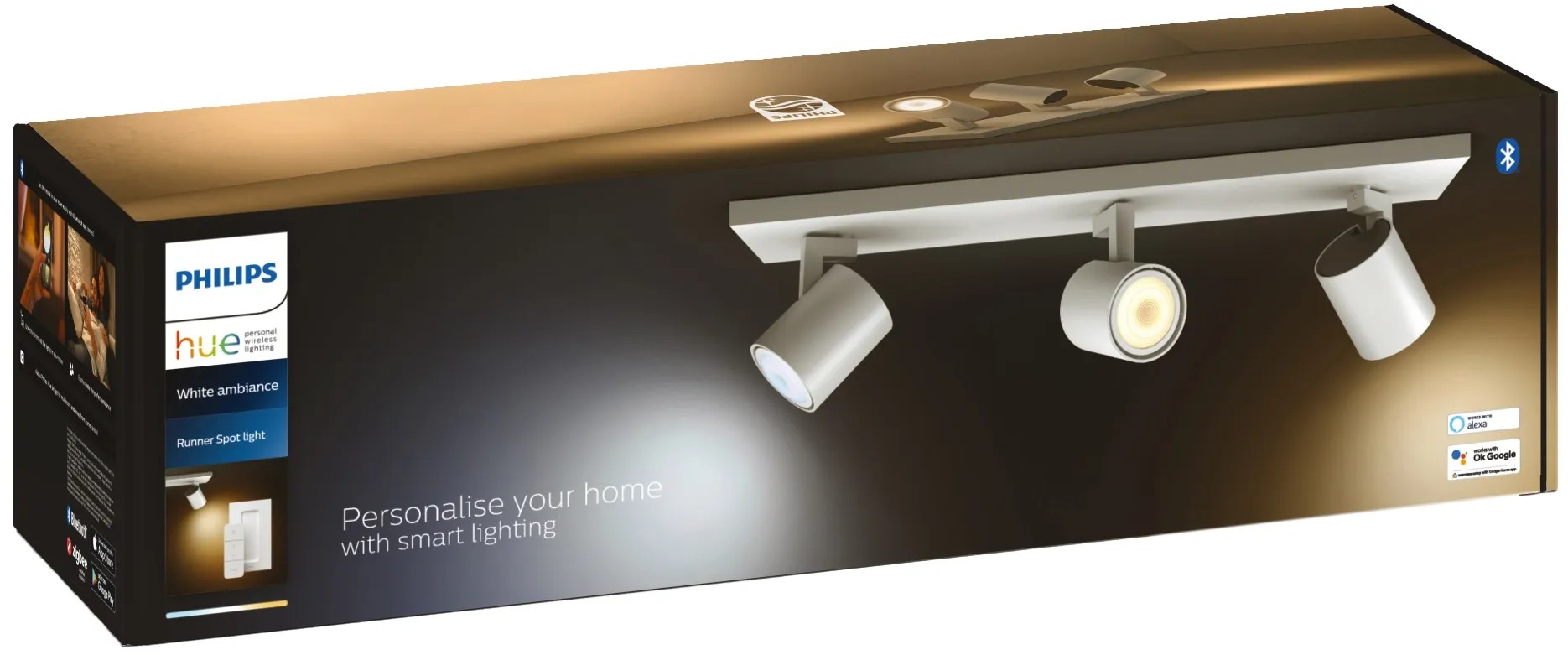 A Philips Hue White Ambiance Runner spotlámpa egyszerű és intuitív kezelhetőségével tűnik ki a csomag részét képező Hue fényerőszabályozó kapcsolónak köszönhetően. A négy előre programozott fényösszeállítás minden helyzethez megfelelő hangulatot teremt. Világítson meleg- vagy hidegfehér fény a szoba minden sarkába.