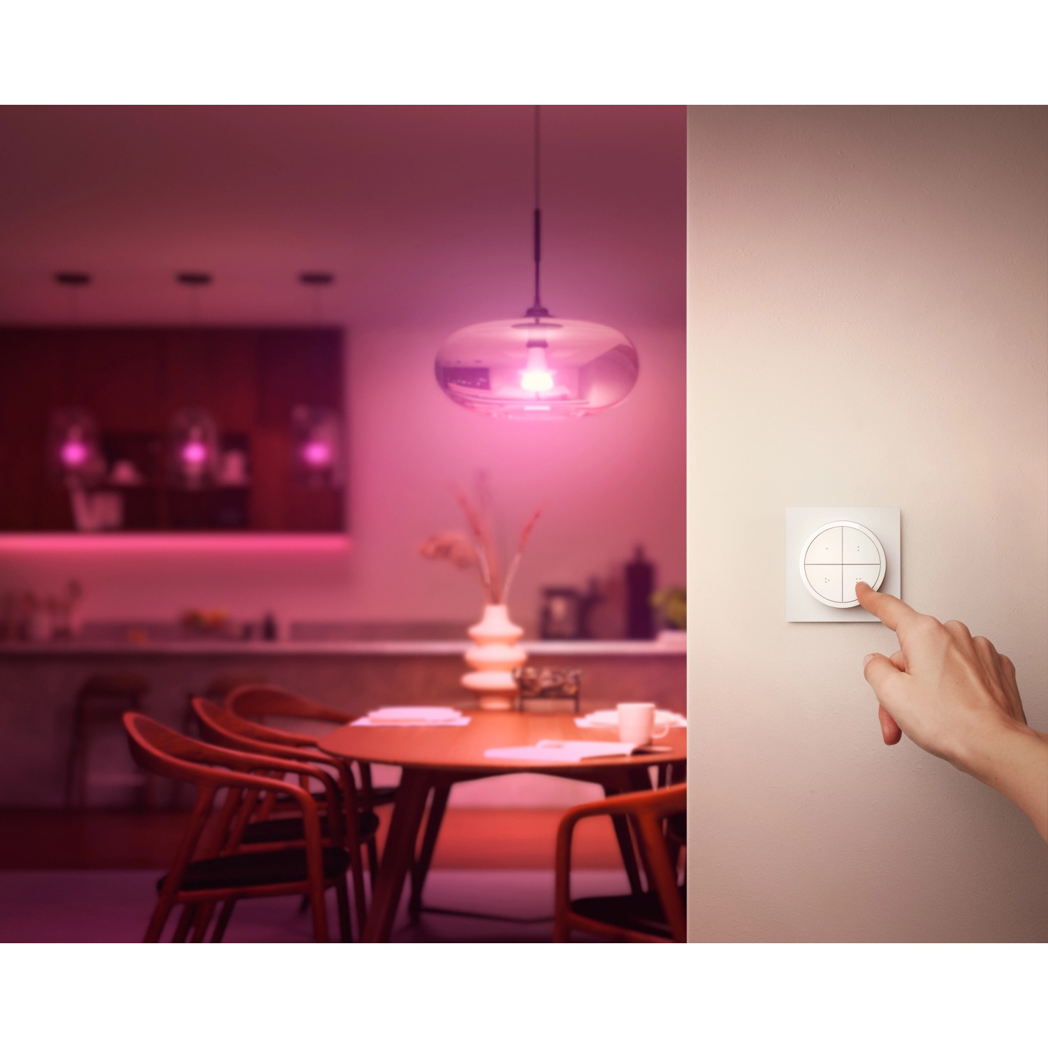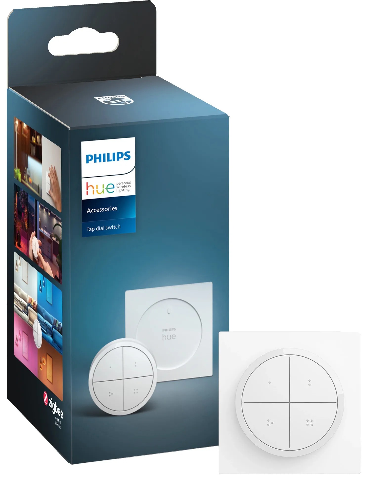 A fehér Philips Hue Tap Dial kapcsoló a Philips Hue intelligens rendszer egyik kiegészítője: Intuitív hozzáférést biztosít a világítási rendszer nyújtotta lehetőségekhez a család minden tagja számára érthető és egyszerű kezelőszervek segítségével. Használható a falon vagy távirányítóként is, négy testreszabható gombbal és szabályozóval - könnyen személyre szabható a Hue alkalmazásban.