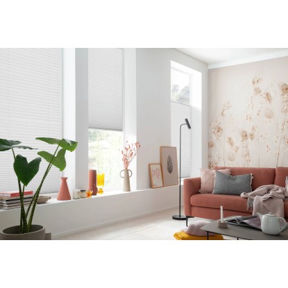 A színben hozzáillő zsinórokon lévő pliszé a mellékelt tartók segítségével csavarozható fel az ablakhoronyba. Alternatív megoldásként kétféle ragasztós és kétféle kapcsos rögzítés is lehetséges. Az ehhez szükséges tartók külön kaphatók a tartozékként. A kezelősínek, a fogantyúk és a tartók fehér színűek, így észrevétlenül illenek a pliszéhez, és így még jobban kiemelik az anyagot.