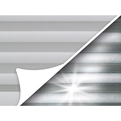 A könnyű használat érdekében egyszerűen felfelé és lefelé tolható. A hátoldalon a pliszé hővisszaverő, ezüst színű bevonattal rendelkezik. Így képes visszaverni a napsugárzást, tehát kevesebb hő jut be a helyiségbe. Sötétítő megjelenésének köszönhetően a pliszé ideális védelmet nyújt a beérkező napsugarak ellen, miközben távol tartja a kíváncsiskodó tekinteteket. Fúrás nélkül szerelhető fel a mellékelt fém rögzítőtartók segítségével. A csomag a szükséges szerelőanyagokat is tartalmazza.