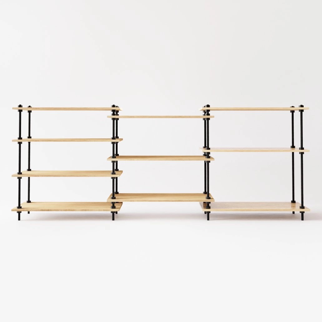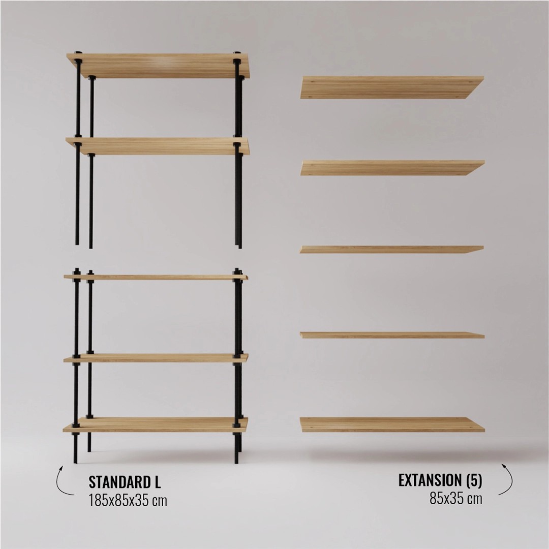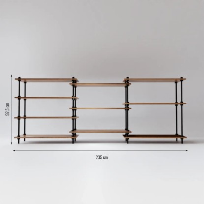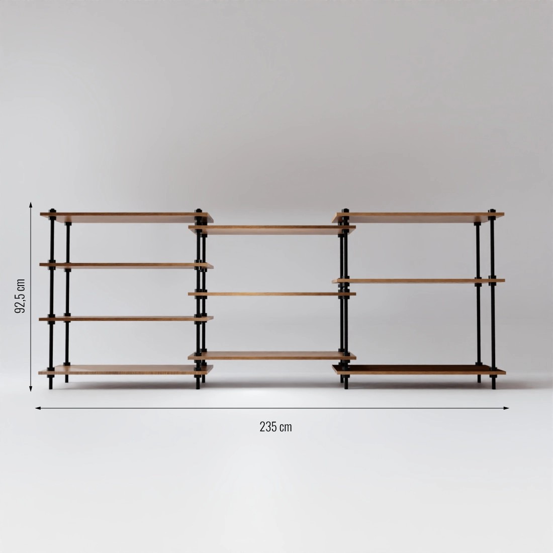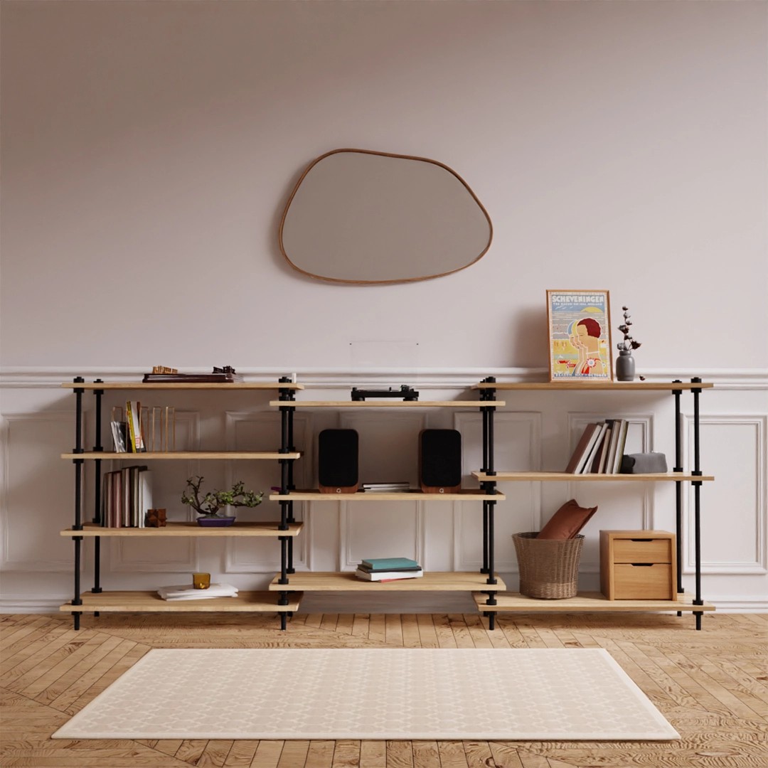 A minőségi laminált fapolcok és a porfestett acélváz kombinációja strapabíró és hosszú élettartamú. A szabadalmaztatott szerelősapkákkal a polcok magassága tetszőlegesen állítható, így tökéletes tárolási megoldást kínál bármilyen falra. Emellett ideálisan használható térelválasztóként, és harmonikusan illeszkedik minden féle lakberendezési koncepcióhoz.