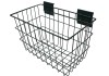 Az antracit szürke acélhálós kosár a fém polcos állványok hosszanti- vagy keresztösszekötőire akasztható.
