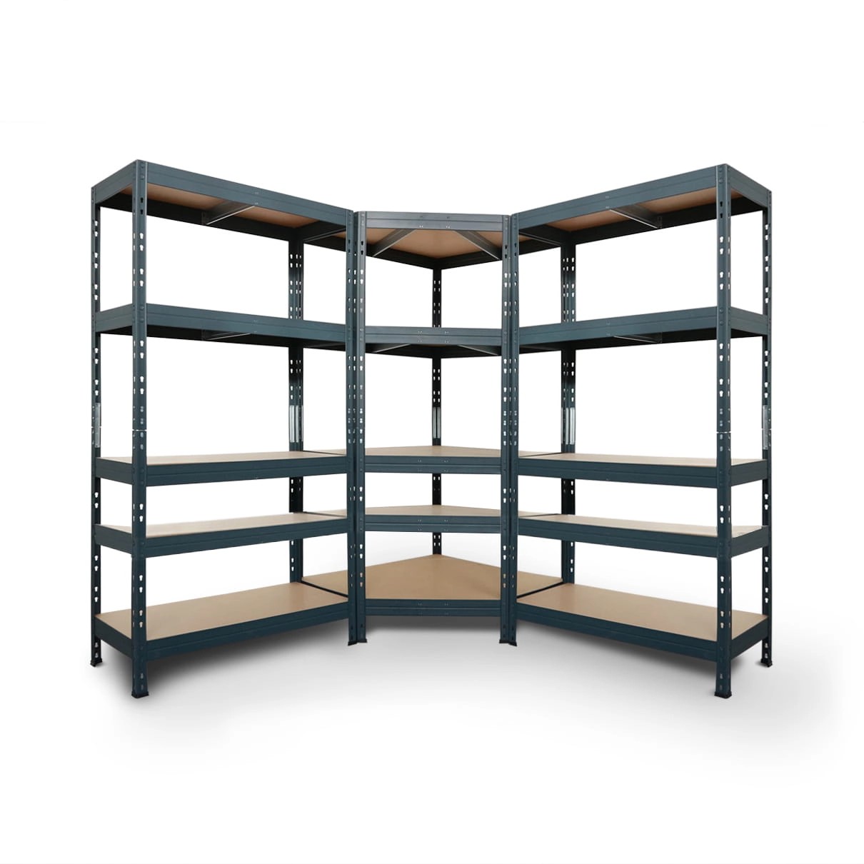 1x AR Shelving Rivet sarok nagy teherbírású polcállvány 180 x 90 x 90 x 45, 5 polccal és 250 kg teherbírással polconként.