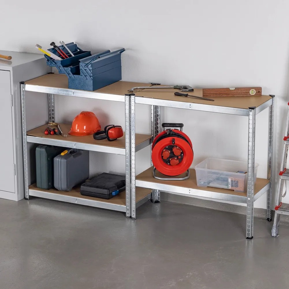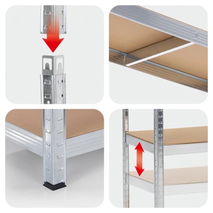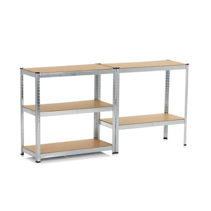 Az "EASYmaxx" 2 az 1-ben nagy teherbírású polcrendszerrel és munkapaddal további tároló- és polchelyet hozhat létre a pincében, raktárhelyiségben vagy hobby műhelyben. Az okos dugaszolható rendszernek köszönhetően könnyen összeszerelhető és sokoldalúan felhasználható: Összeállíthatja hosszában egy magas tároló polcként vagy két egymás melletti félmagas polcként, amelyeket aztán akár munkapaddá is átalakíthat. Az összeszerelés egyszerű, és nem igényel bonyolult szerszámokat: egyszerűen helyezze be a polcok keresztmerevítőit a kívánt magasságban a keresztrudakban található nyílásokba. Az 5 polc egyenként is felszerelhető. Minden egyes polc erős, akár 175 kg-os teherbírással rendelkezik. Az illesztésre behelyezhető műanyag sarkoknak köszönhetően nem maradnak nem kívánt nyomok a padlón. Hozza ki a legtöbbet pincéjéből, garázsából vagy hobbiműhelyéből - az "EASYmaxx" 2 az 1-ben nagy teherbírású polcrendezőnek és munkapadnak köszönhetően!