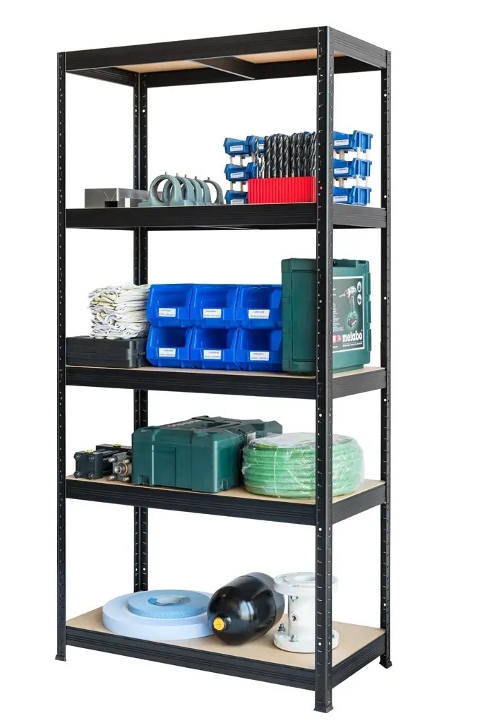 Mérete: 180 cm x 90 cm x 45 cm. Fekete porfestett acél keret. 5 faforgácslap polc fekete porfestett acél kerettel. 350 kg polc szintenkéni teherbírás. 1750 kg összteherbírás. Gyors és könnyű csavarozás-mentes összeszerelés. Állítható polcmagasság. A nagy precizitással kivitelezett fém alkatrészeknek köszönhetően kiváló stabilitás és tartósság. Széles körben felhasználható intézményeknél, cégeknél és háztartásokban is.