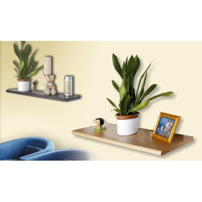 Laminált bútorlapból készült, bükk színű, lebegő polc rejtett polctartóval. Mérete: 80 cm x 18 cm x 2,5 cm.