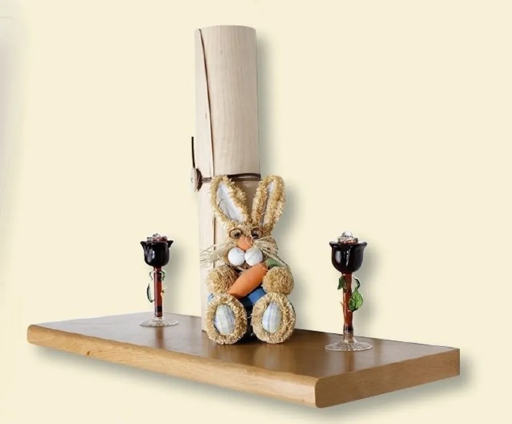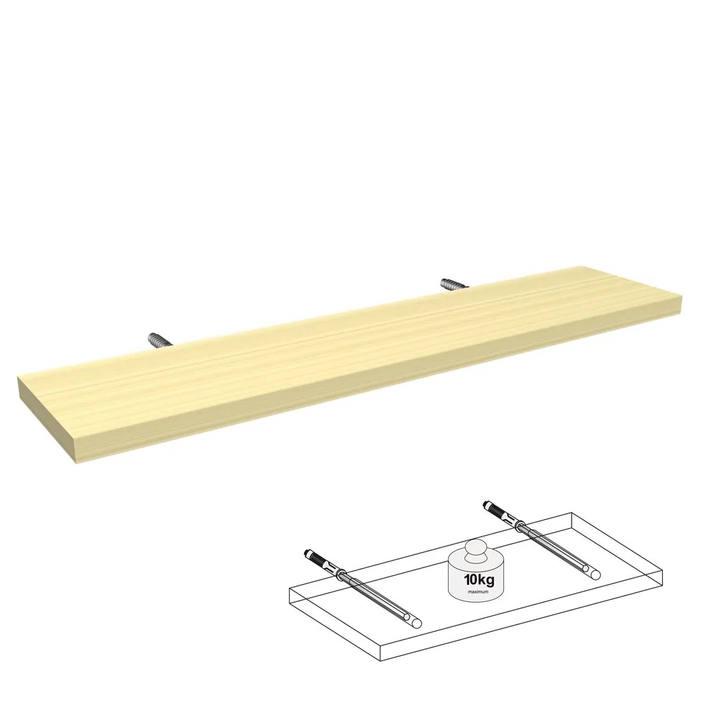 Laminált bútorlapból készült, juhar színű, lebegő polc rejtett polctartóval. Mérete: 80 cm x 18 cm x 2,5 cm.