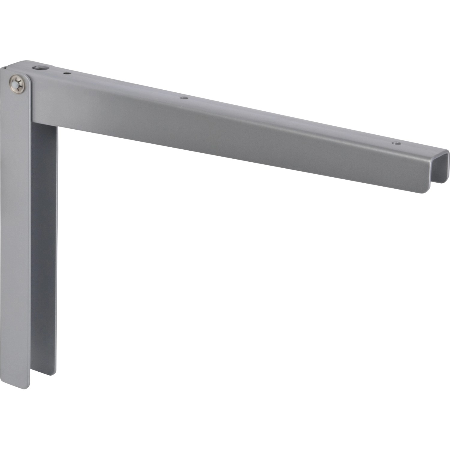 Ez a lehajtható konzol helytakarékos tartó polcok számára. Lehajtható és 90°-os szögben rögzíthető. A konzol tartós és stabil acélból készült, horganyzott felülettel. Az alumíniumszürke színű, egyszerű és modern kialakítás sokféle tervezési koncepcióhoz illeszkedik. A 30 kg-os maximális teherbírásnak köszönhetően a lehajtható konzol polclapokhoz is jó választás. A csomag 1 konzolt tartalmaz.