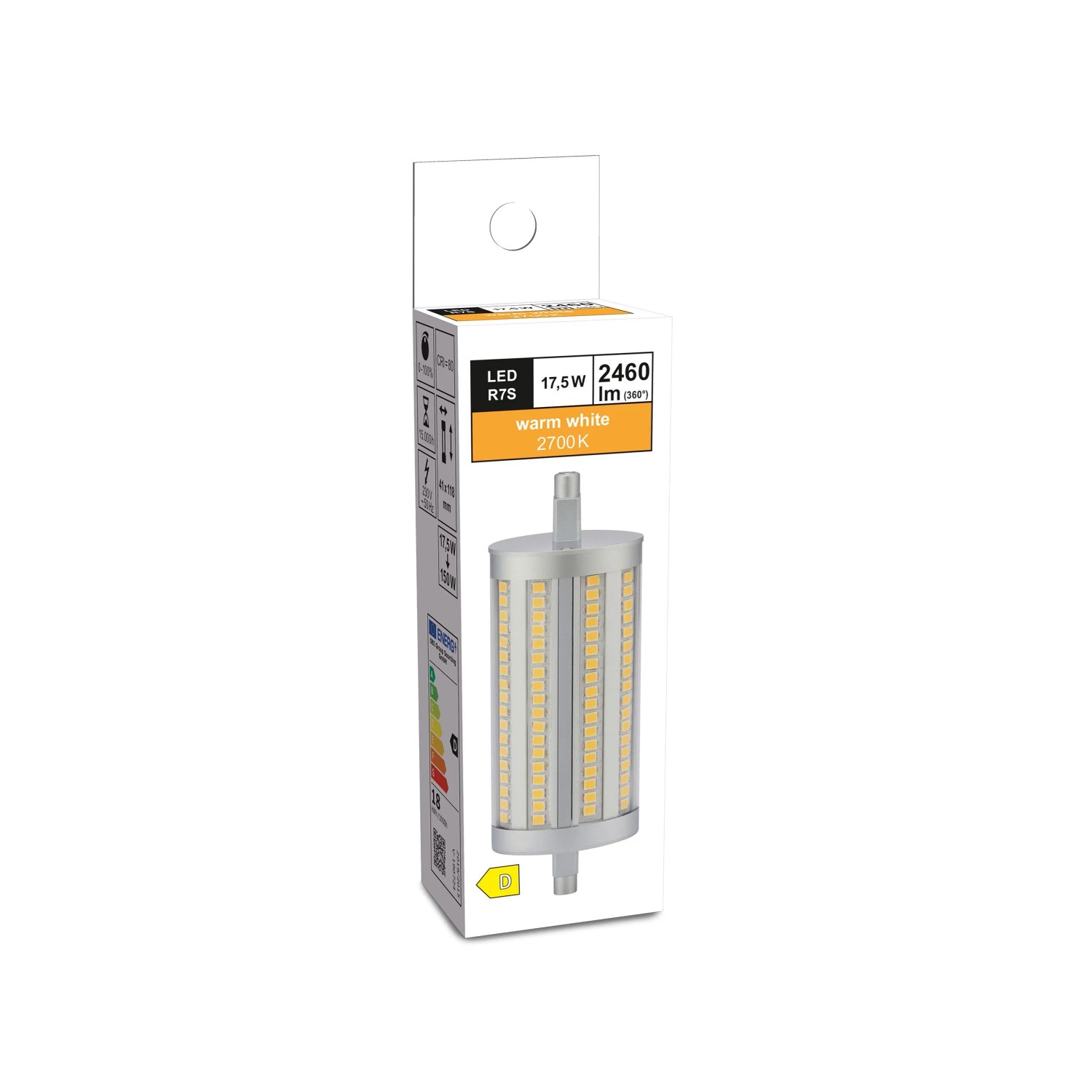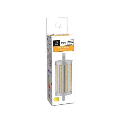 2700 Kelvin értékével az R7S foglalatú izzó melegfehér fényt bocsát ki, ezért kiváló választás lakóterekbe.A gyártó adatai