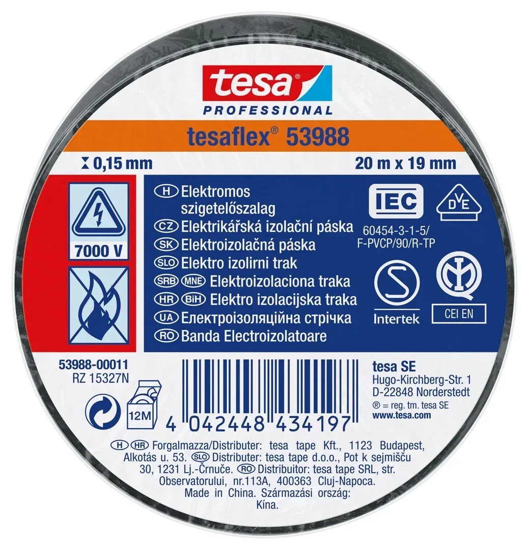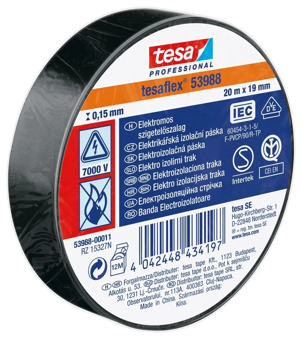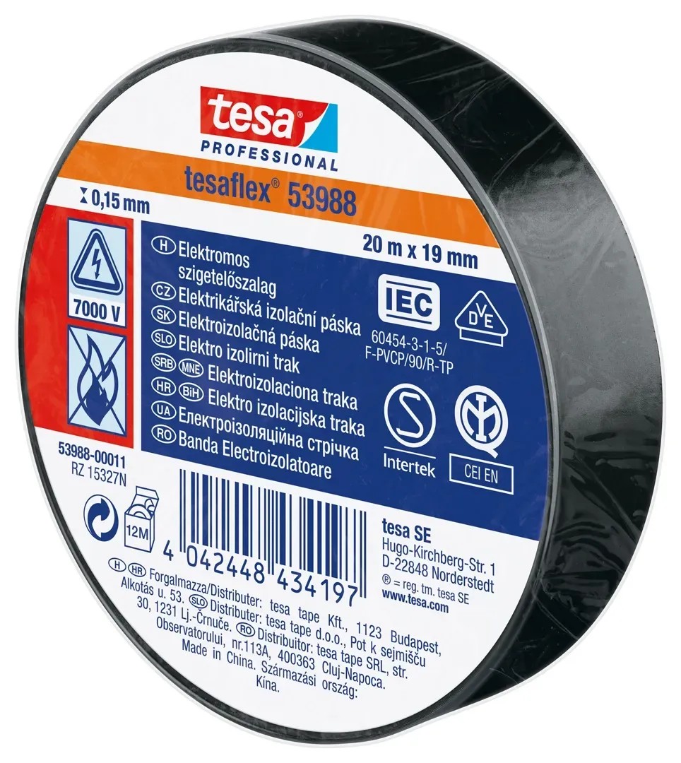 tesa elektromos szigetelőszalag fekete 20 m x 19 mm