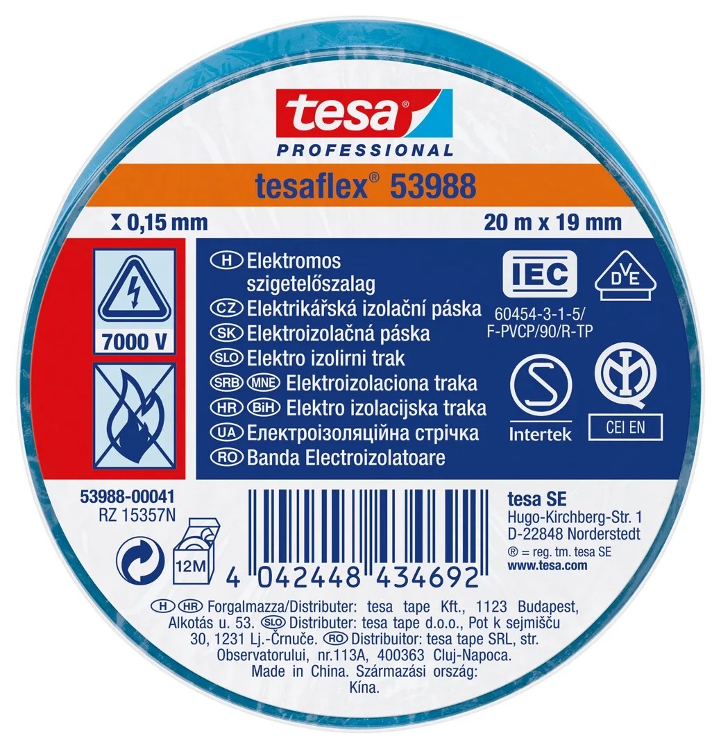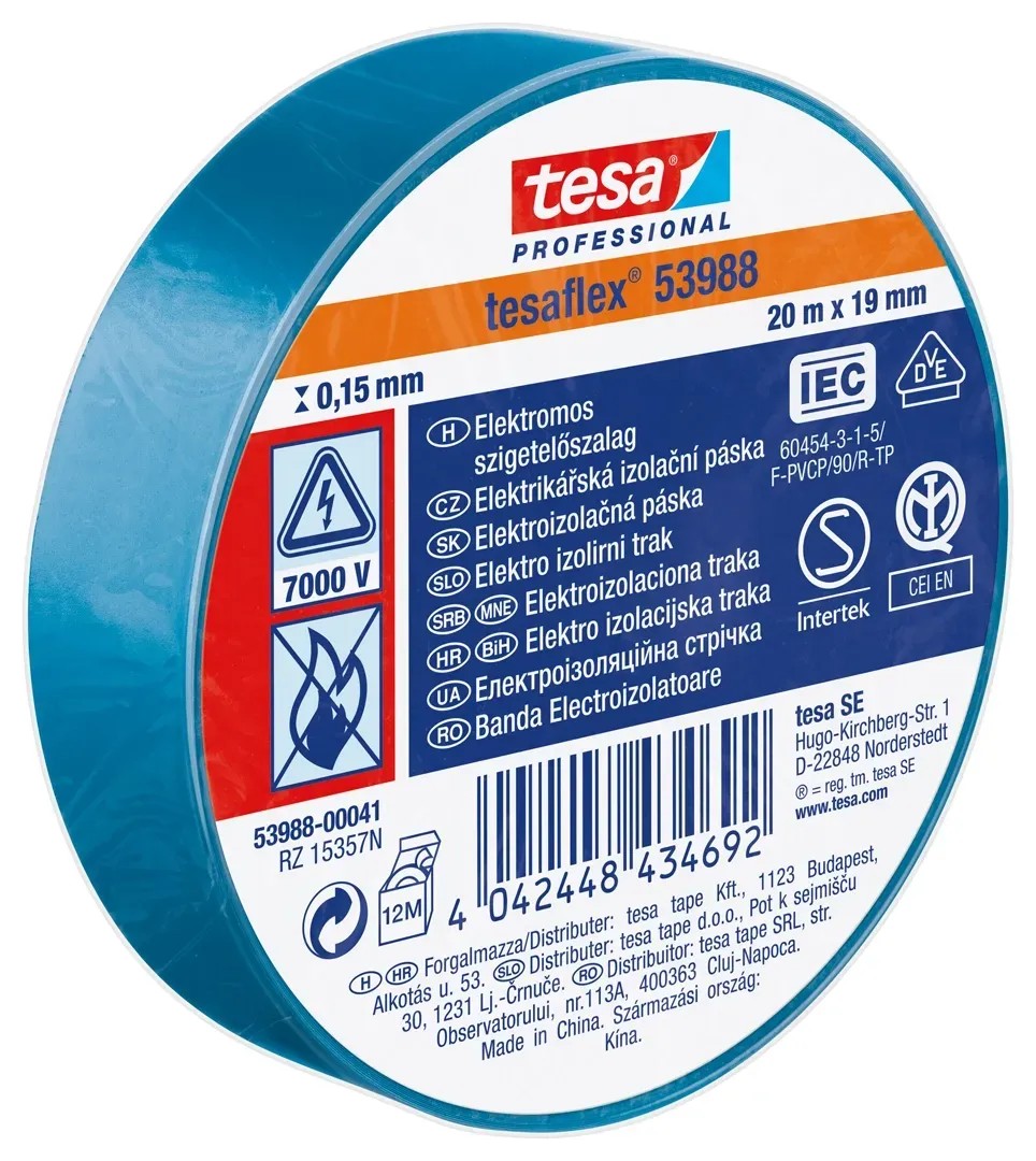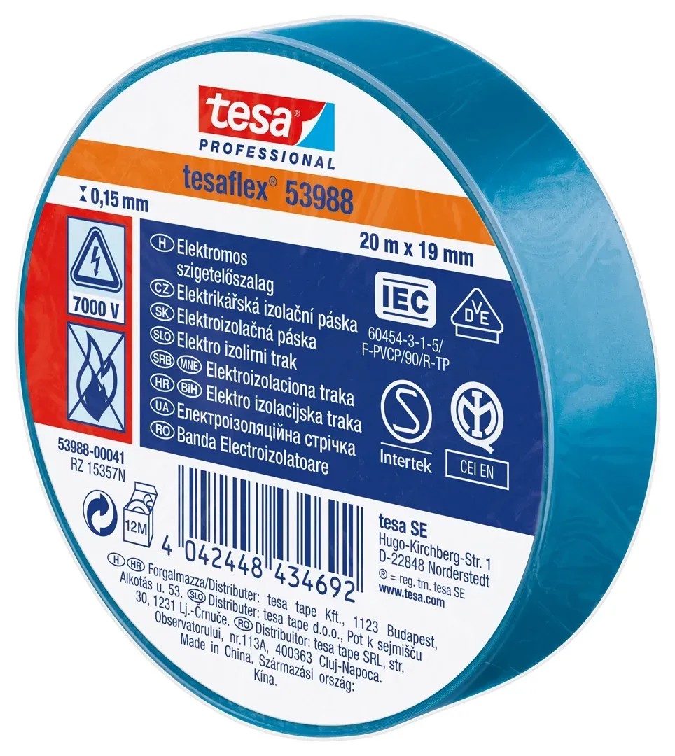 tesa elektromos szigetelőszalag kék 20 m x 19 mm
