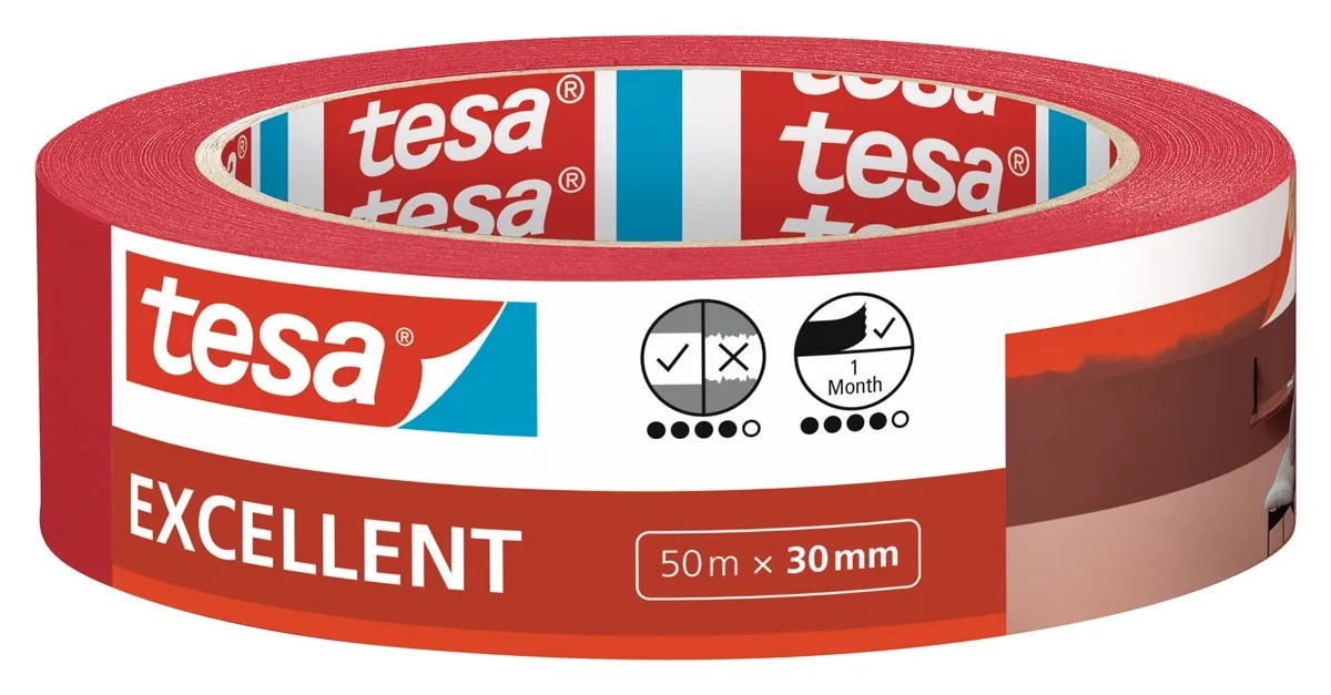A tesa Excellent maszkolószalaggal a festékszélek mindig élesek és tiszták lesznek. Ideális különböző beltéri festésekhez, mivel pontos, minőségi munkát garantál, miközben felragasztása is egyszerű. A tesa Excellent maszkolószalagot könnyű eltávolítani, nem hagy nyomot - beltérben akár 1 hónapig leszedhető. Jól tapad különféle felületekre, mint a finomvakolású falak, tapéták, üveg, alumínium, fa, vagy a kemény PVC. Tartós, hatékony és tökéletes végeredményt biztosít. Még soha nem volt ilyen egyszerű a festés! A Tesa Excellent maszkolószalag garantálja a nagyszerű végeredményt. Nem szakad el lehúzás közben, ezért könnyű eltávolítani, és mindeközben nem okoz sérüléseket a falon. Egyszerűen tökéletes megoldás bármilyen beltéri festéshez.