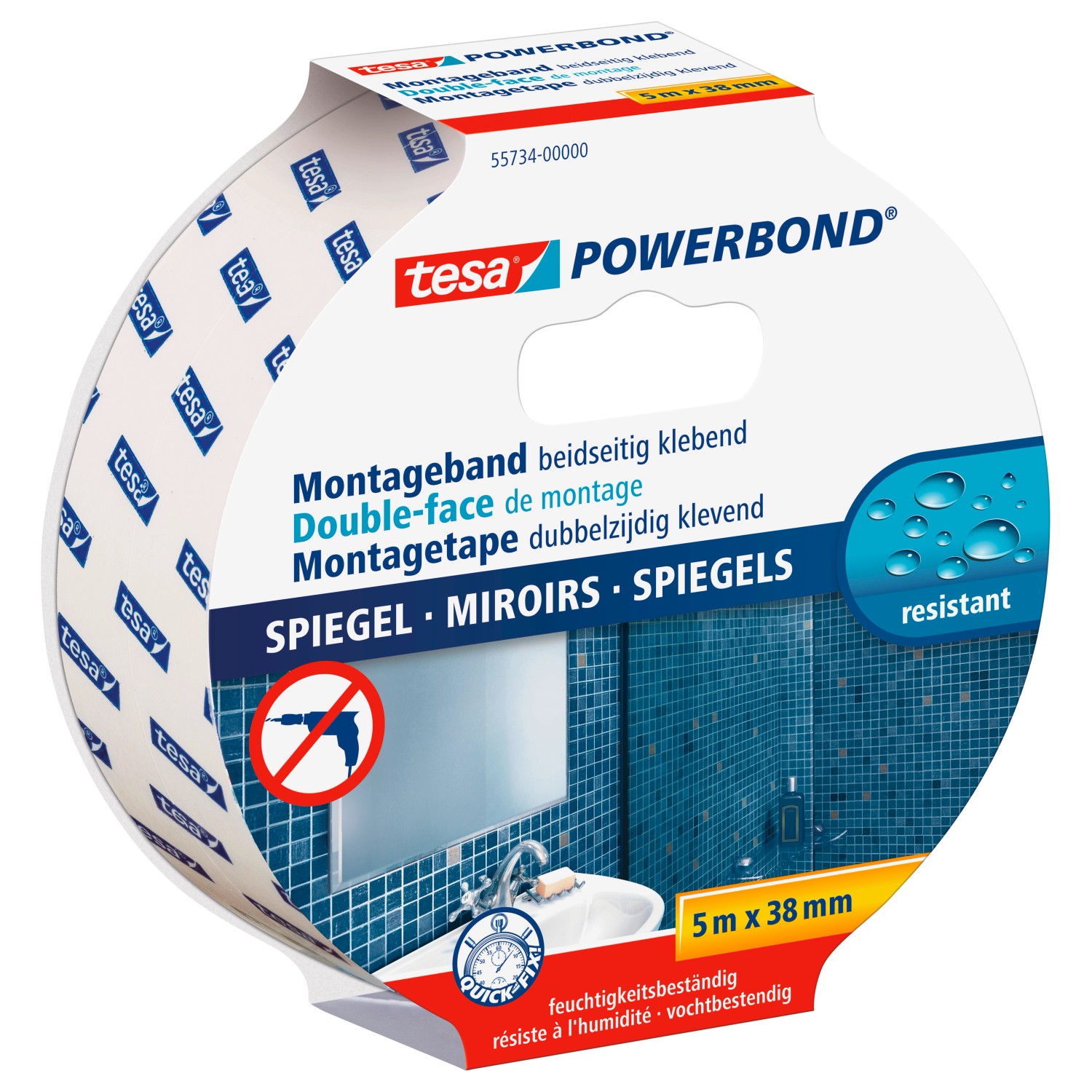A tesa Powerbond tükörragasztó szalag kiemelkedő tapadóerővel rendelkezik, még nedves helyeken, például fürdőszobákban is. Képes megtartani akár 70 cm x 70 cm-es, legfeljebb 4 mm vastagságú tükröket. Mivel nincs szükség szögekre vagy csavarokra, ez a kétoldalas szalag megbízhatóan rögzíti a fürdőszobai vagy fali tükröket anélkül, hogy a csempe sérülése miatt kellene aggódni.
