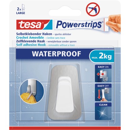 A tesa Waterproof öntapadó akasztók fúró, kalapács és szeg nélkül biztosítják legfeljebb 2 kg tömegű tárgyak rögzítését. A rozsdamentes acélból és műanyagból készült akasztók vízállóak, ezáltal kiválóan alkalmasak a magas páratartalmú helyiségekbe. Így a könnyű tárgyak, például kéztörlők, fürdőszivacsok, edényalátétek, konyharuhák stb. biztonságosan és megbízhatóan akaszthatók fel.